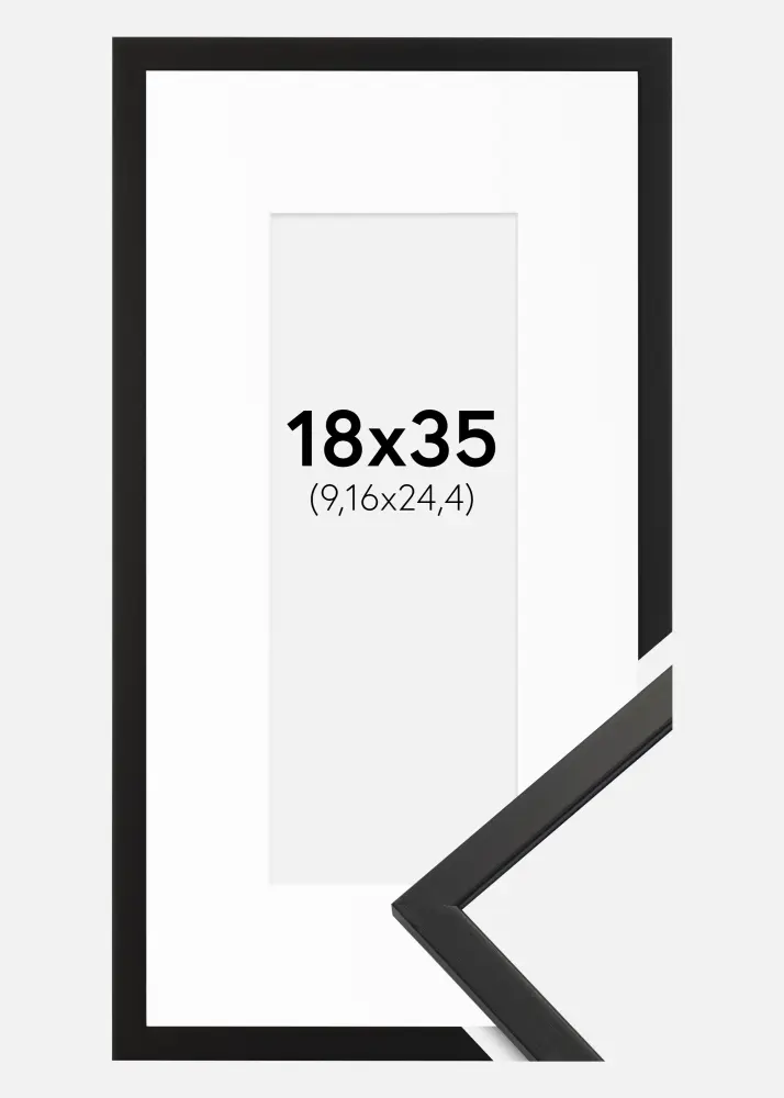 Forfait comprenant le cadre photo et le passe-partout blanc assorti. Sur la photo du produit, vous pouvez voir les dimensions du cadre (indiquées en gras) et les dimensions intérieures du passe-partout (indiquées entre parenthèses). Notez que les dimensions intérieures du passe-partout se doivent d'être toujours 1 cm inférieures par rapport à la taille de l'image que vous souhaitez encadrer.