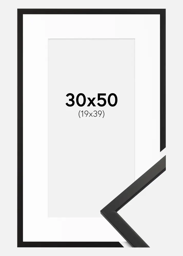 Cadre Edsbyn Verre acrylique Noir 30x50 cm - Passe-partout Blanc 20x40 cm