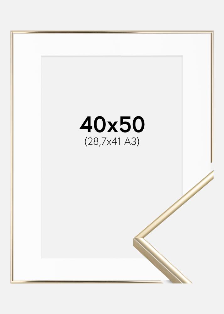 Cadre Visby Brillant Or 40x50 cm - Passe-partout Blanc 29,7x42 cm (A3)