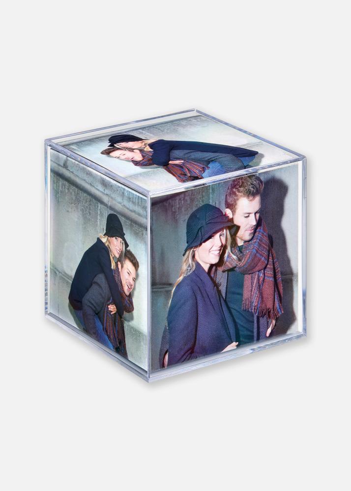 Lancer le sélecteur de cadres »Cadre unique et amusant sous la forme d'un cube photo en acrylique qui est un cadeau parfait pour vos chers et tendres. Votre imagination est la seule limite ; remplissez de jolies photos ou pourquoi pas de belles citations ?/