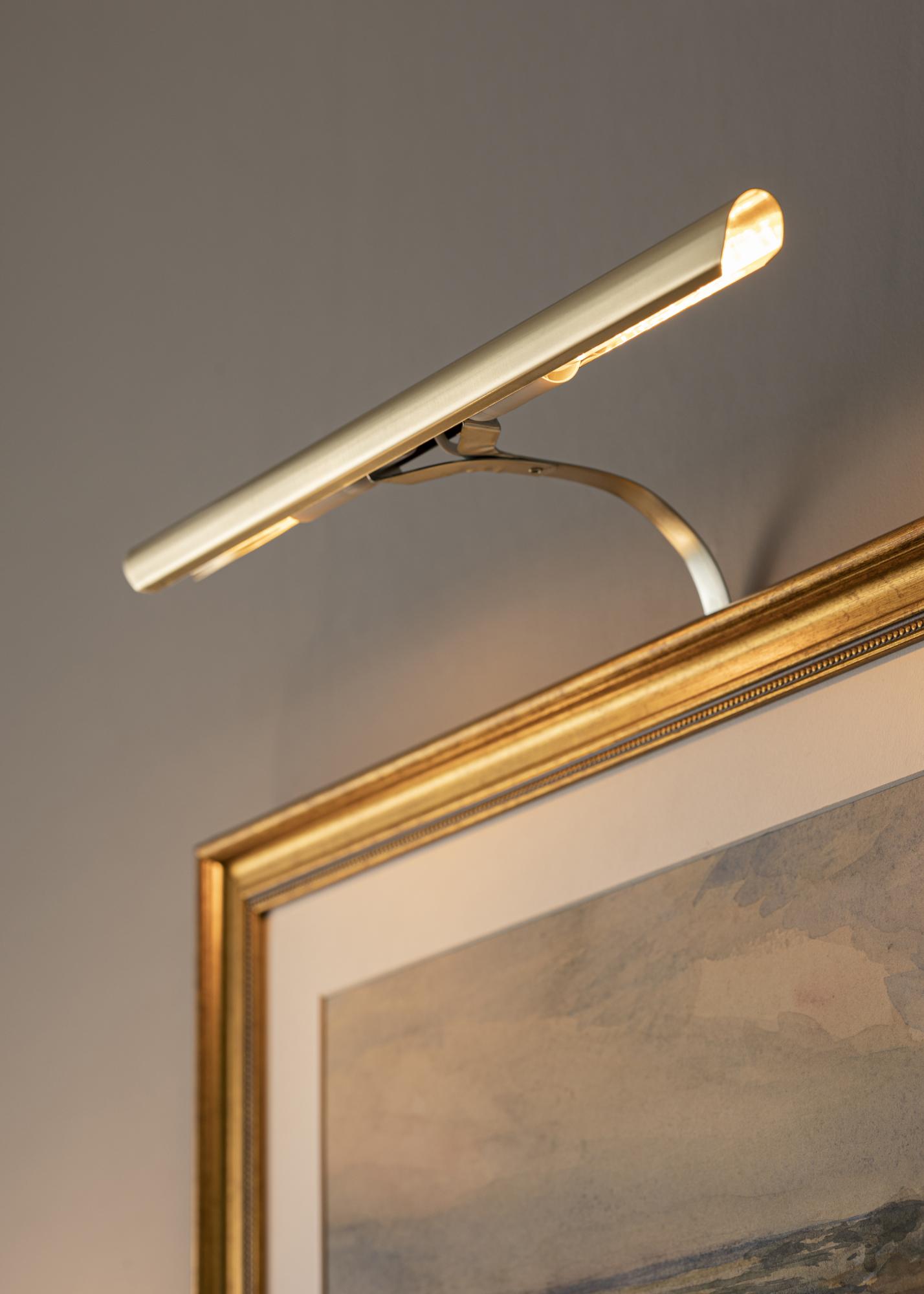 Pour quels tableaux convient l’éclairage ? Normalement, vous attachez l'éclairage de tableau à l'arrière du cadre, mais l'inconvénient est que cela nécessite un cadre en bois (certains cadres en composite fonctionnent également bien) avec un profil large pour pouvoir visser dans le cadre. Avec notre support mural, vous n'avez pas à y penser et pouvez installer simplement votre éclairage de tableau directement sur le mur derrière le tableau.