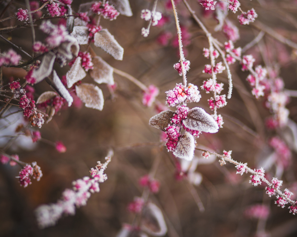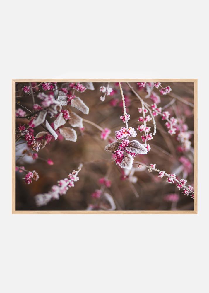 Art photographique en gros plan de baies rosées mordues par le givre avec une faible profondeur de champ. L'impression, avec les baies en rose et l'arrière-plan en tons de chocolat, crée une sensation chaleureuse et accueillante. Dans un format plus grand avec un cadre élégant, le tableau devient un point de mire dans le salon ou placez une version plus petite dans le collage de tableaux avec d'autres posters dans les mêmes nuances de couleur.