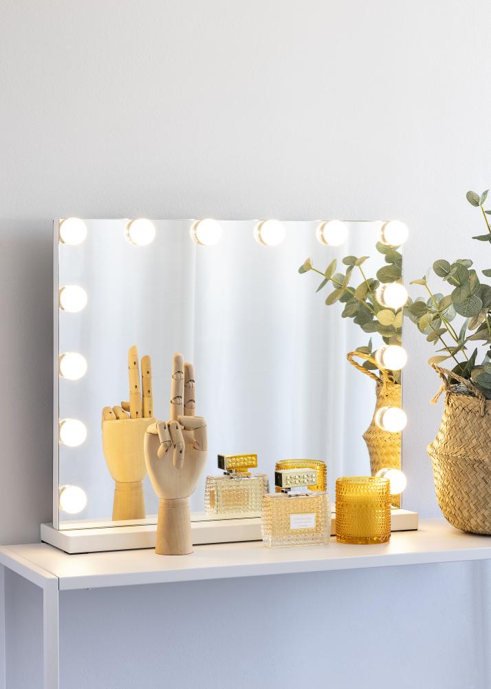 Avec son aspect élégant, son éclairage LED décoratif et sa surface miroir généreuse, c'est un miroir qui est à la fois parfait pour le maquillage et qui devient en même temps un détail tendance dans la maison !