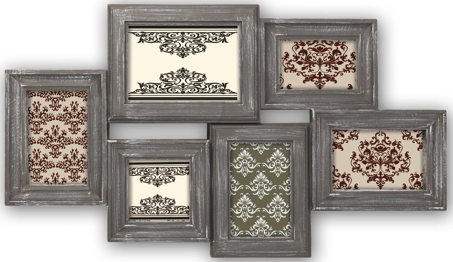 Cadre multivues en gris qui encadre joliment des photos à la fois au format portrait et au format paysage. Ca cadre gris est fabriqué en bois et il est moucheté d'éléments blancs ce qui lui apporte une apparence rustique. Ce cadre multivues peut contenir 6 images aux formats 9x13 cm, 10x10 cm, 10x15 cm et 13x18 cm. Grâce à son design, le cadre peut facilement être associé au mur avec d'autres tableaux, ou bien être accroché seul afin de rehausser vos meilleurs souvenirs photo. Les dimensions intérieures du cadre sont de 66x38 cm. Supports muraux inclus.
