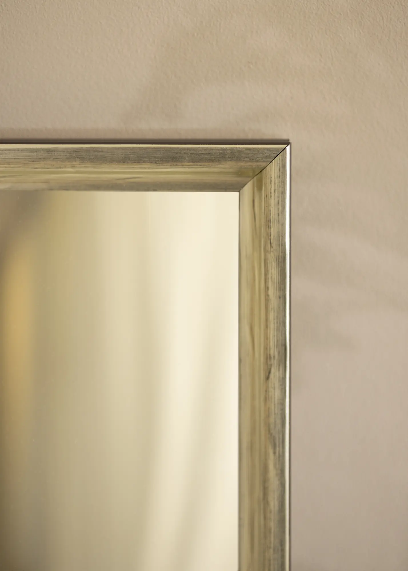 Cadre de miroir de teinte argentée à l'ancienne tirant sur l'or. Excellent choix lorsque vous recherchez un miroir élégant de style classique.