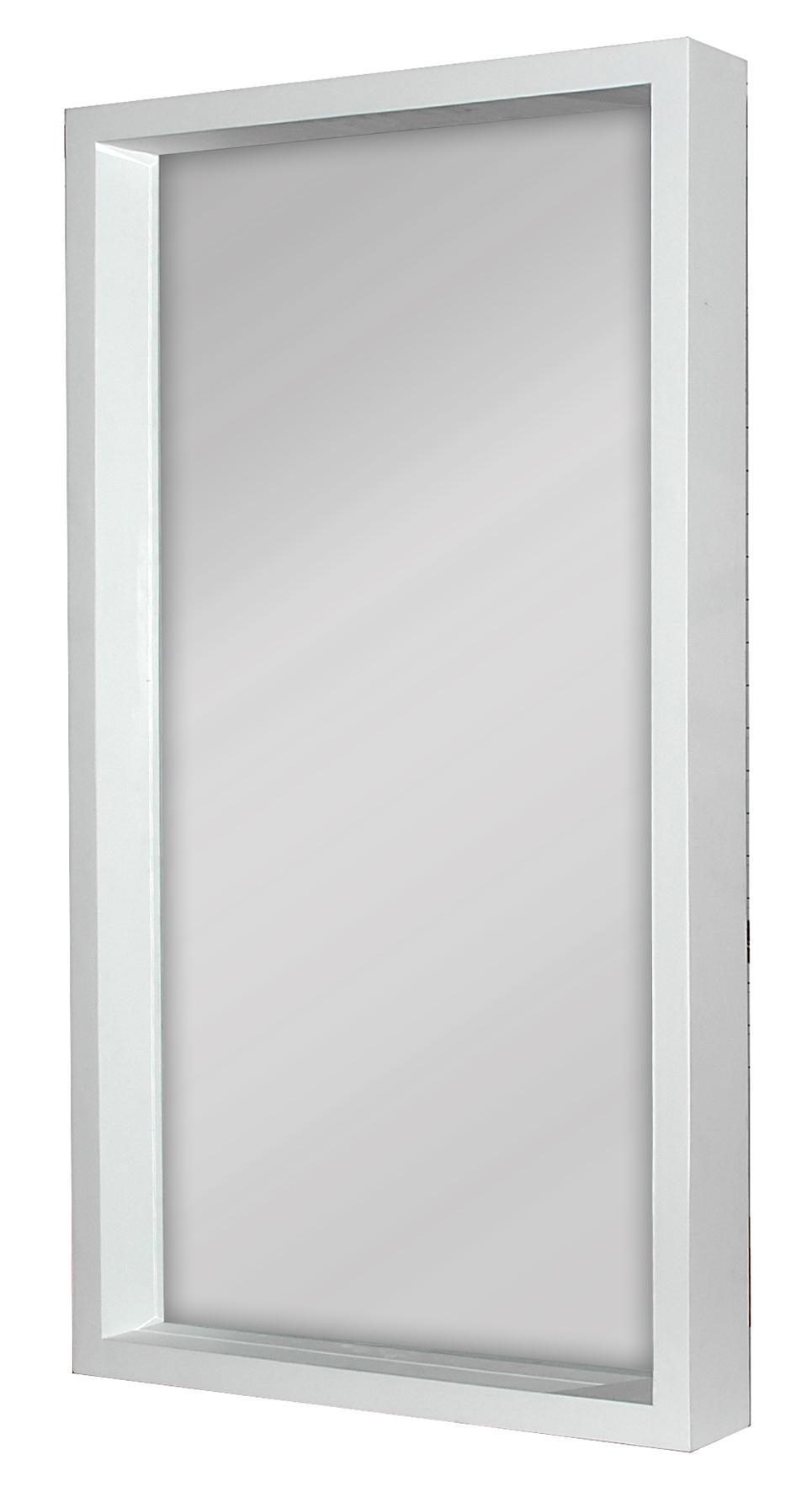 Original, ce miroir avec une bordure de cadre blanche et épurée est fabriqué en bois. Cette apparence sobre fait que le miroir s'intègre bien dans les styles d'intérieur modernes et dépouillés, et la couleur blanche se marie très bien avec un mur plus sombre ou à motifs. Le cadre large permet d'utiliser le bord inférieur pour placer des objets intérieurs, pour donner au miroir une touche personnelle et adoucir l'aspect angulaire.
