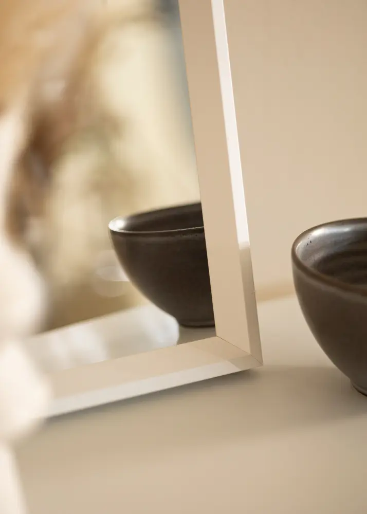 Miroir tendance en blanc qui fonctionne aussi bien dans les petites tailles pour un mur de cadre ou comme un grand miroir pour le hall d'entrée.