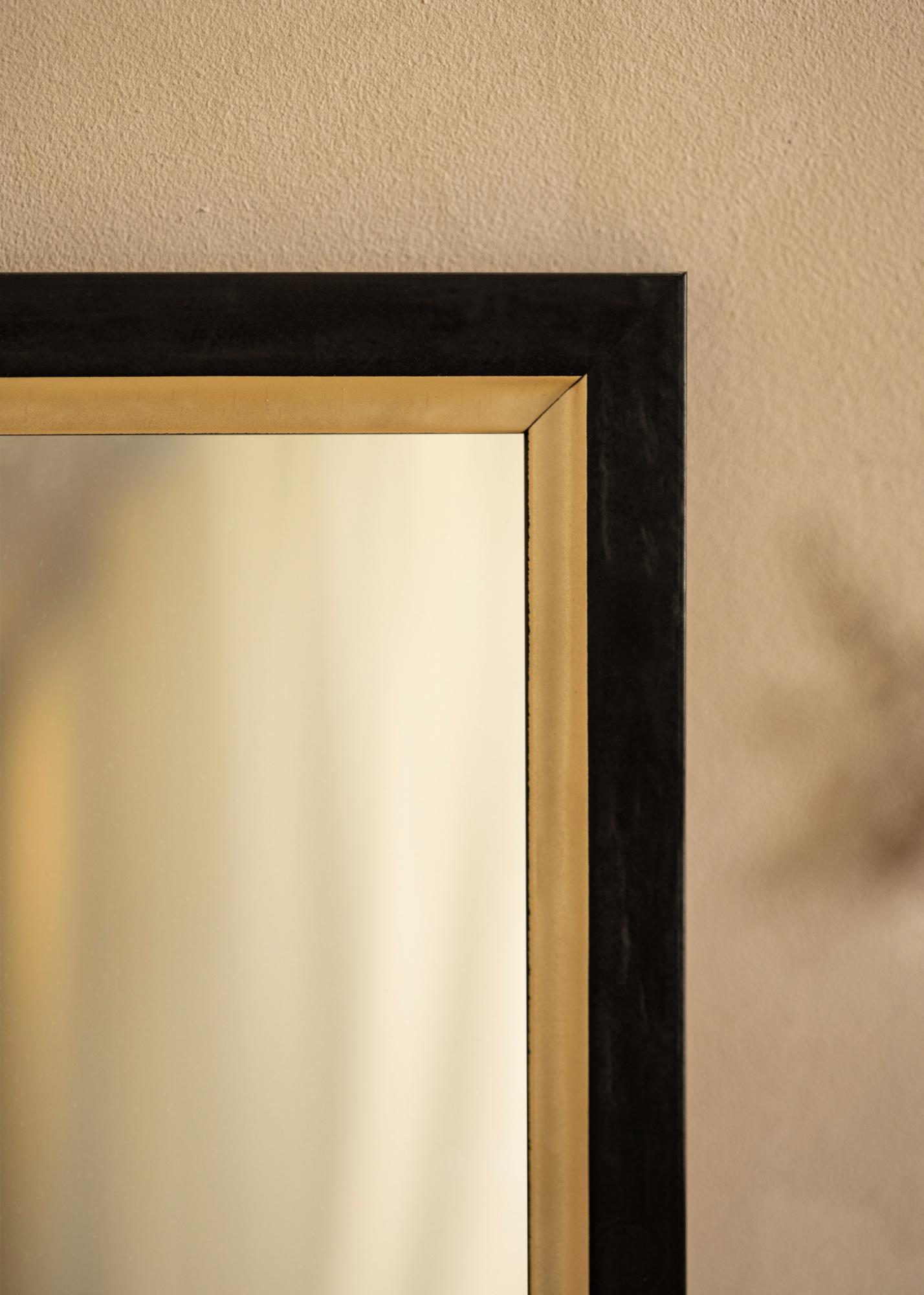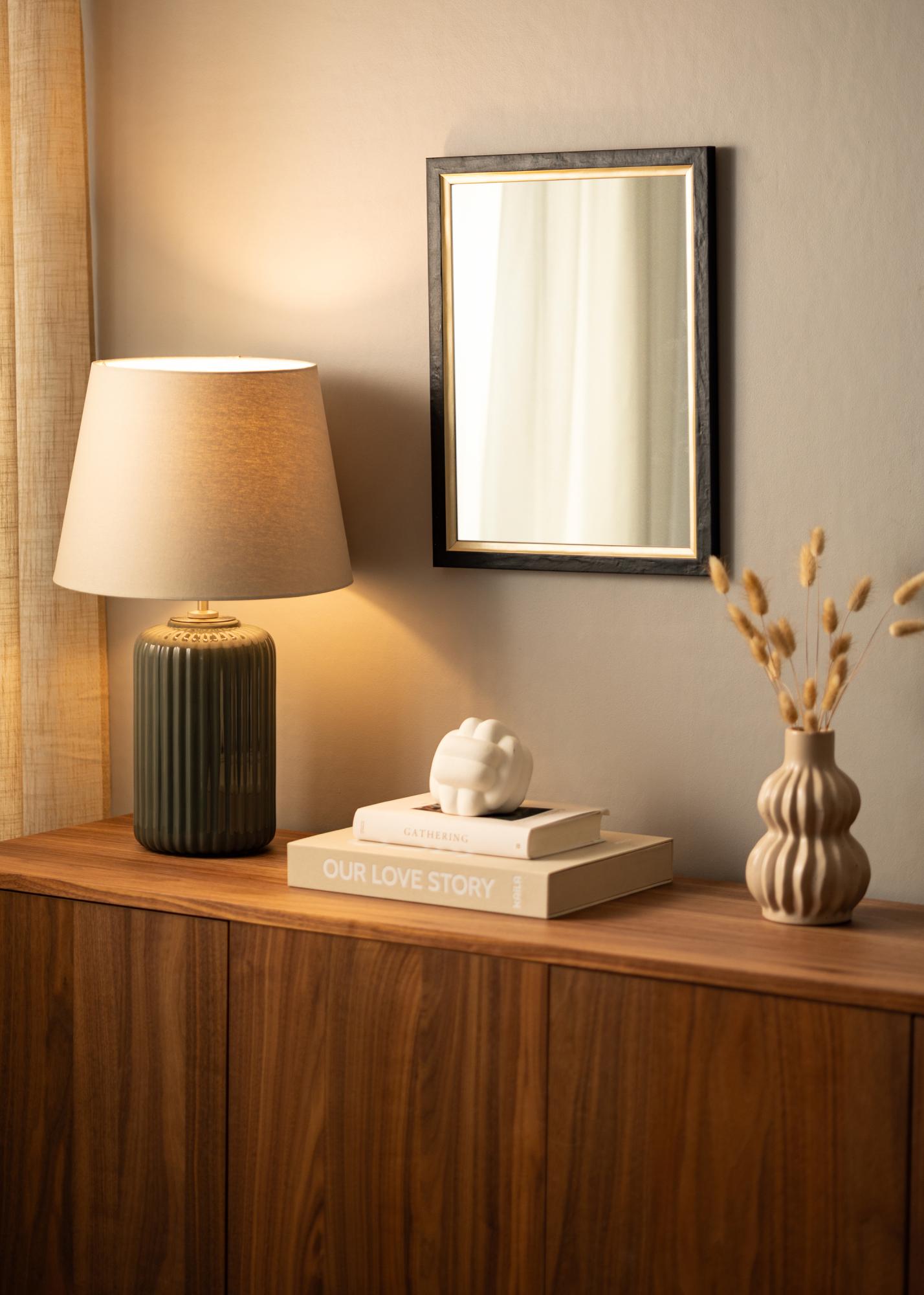 "Leonie" est un large miroir fabriqué en Italie, ce qui garantit une qualité supérieure et un beau design. Le miroir a un profil élégant en noir avec une surface clairement structurée au large bord argenté au plus proche du verre du miroir.