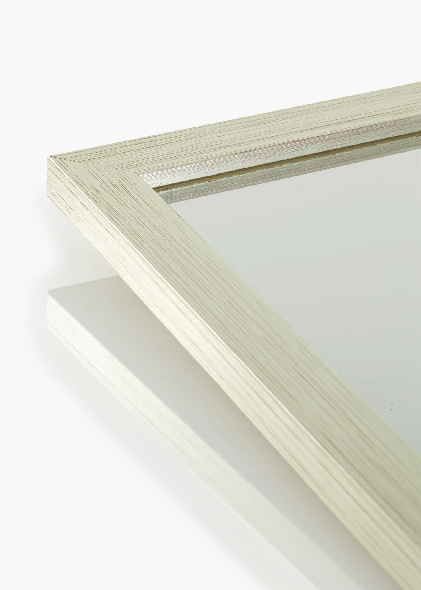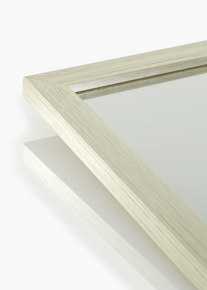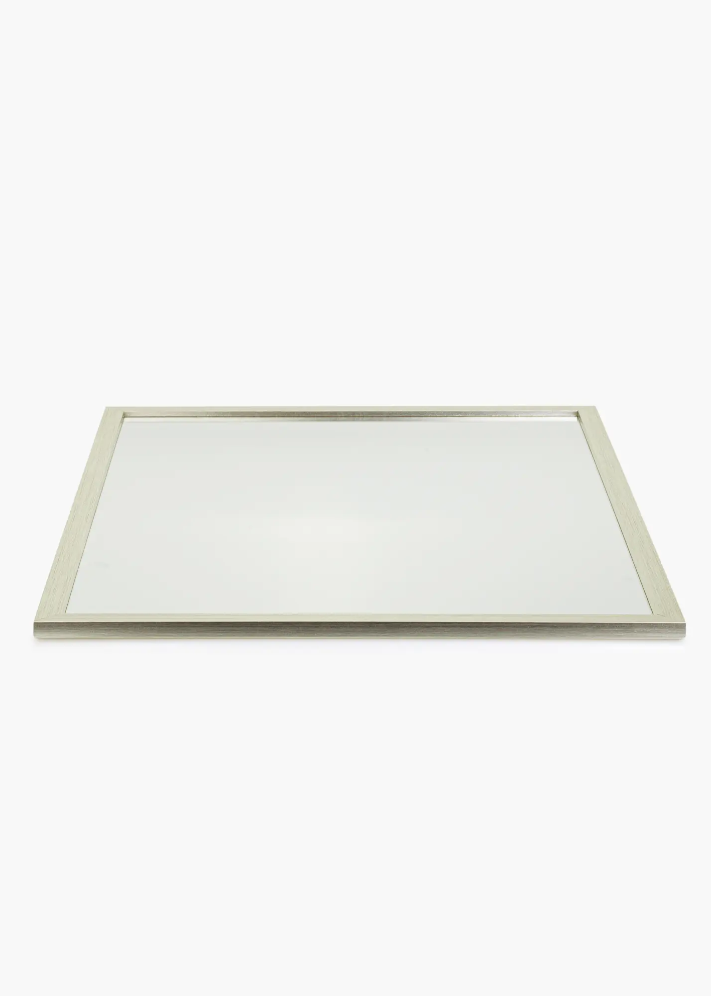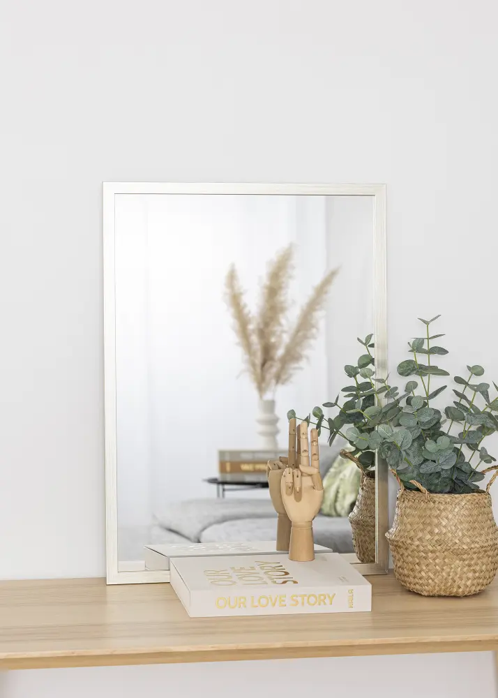Ce miroir est conçu en bois d'ayous, peint dans une belle couleur argentée. Le cadre fait 22 mm de largeur et a un profil droit, ce qui créé un ensemble dépouillé. Placez le miroir dans l'entrée, la chambre à coucher ou bien le salon et laissez le refléter la lumière des lampes et fenêtres d'une façon exquise.