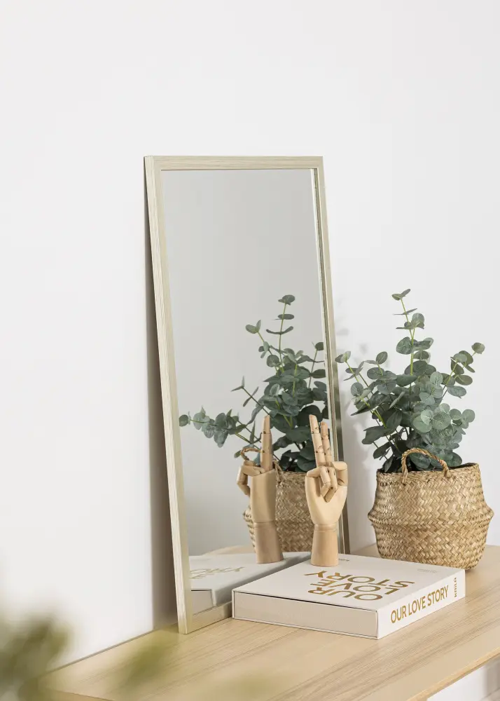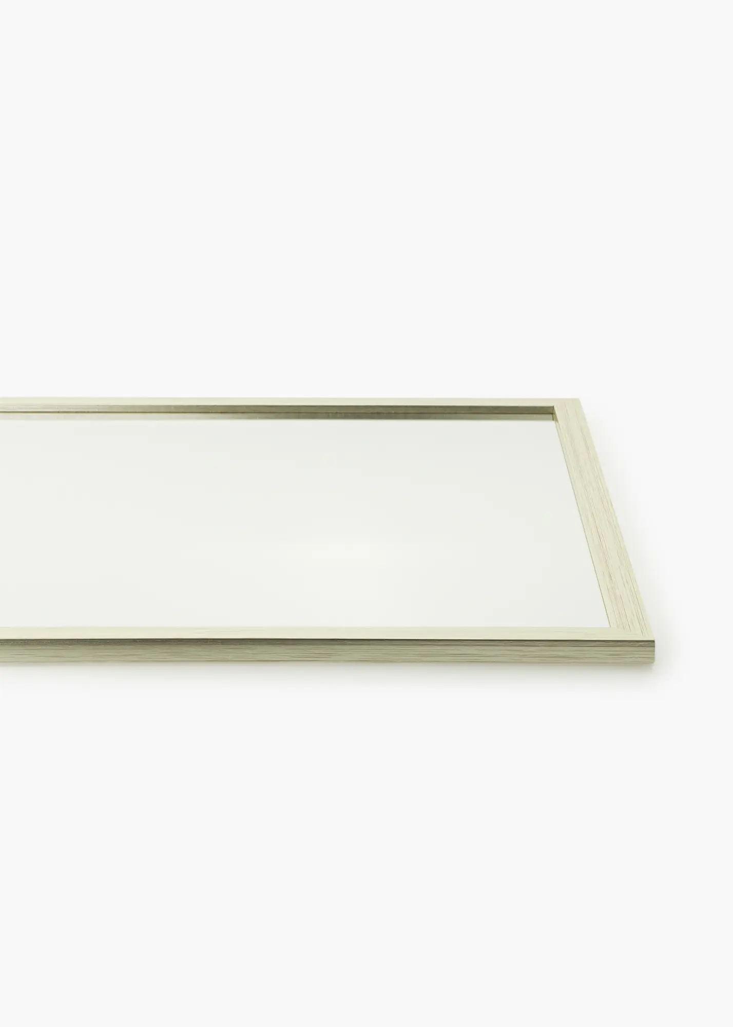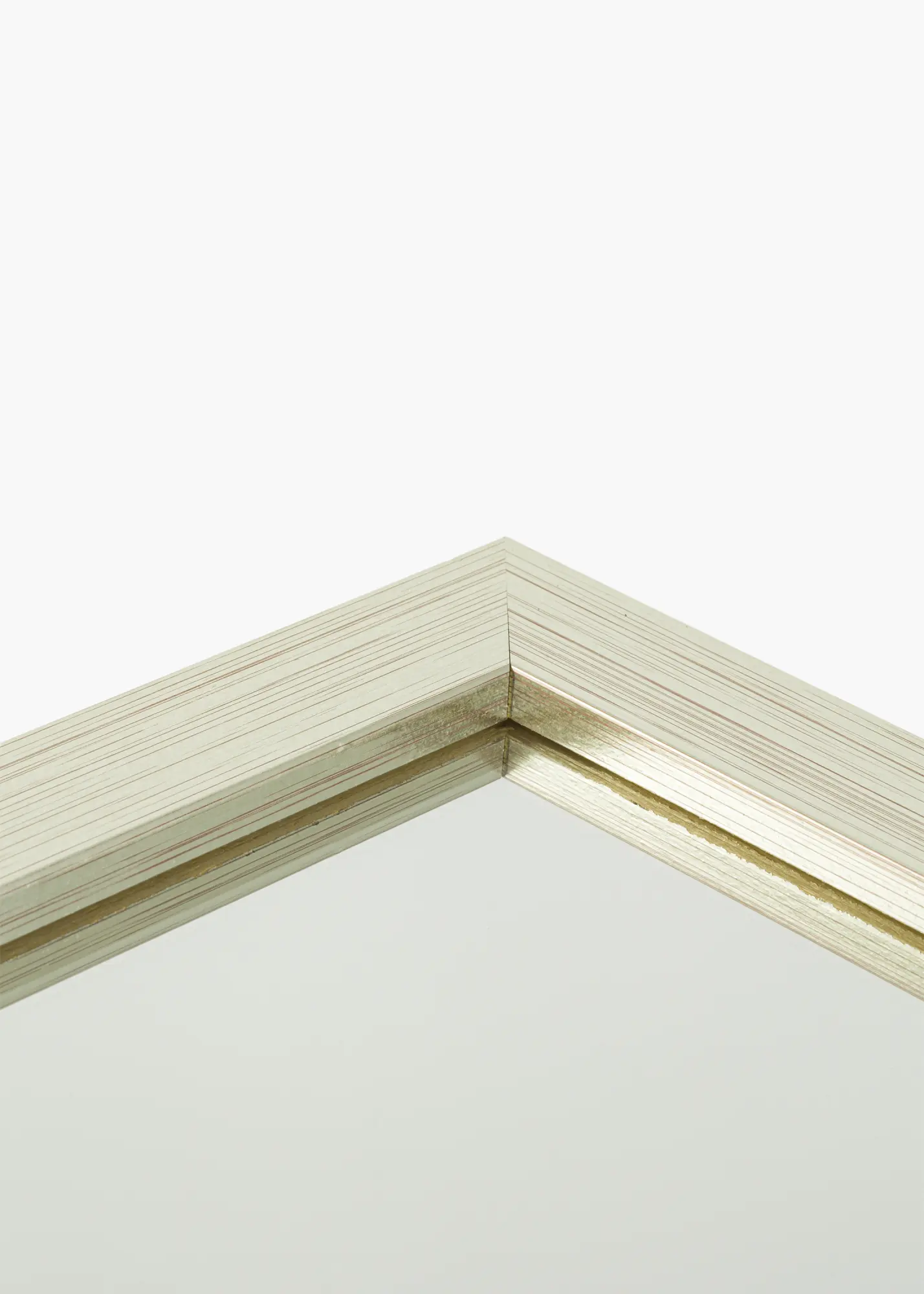 Ce miroir est conçu en bois d'ayous, peint dans une belle couleur argentée. Le cadre fait 22 mm de largeur et a un profil droit, ce qui créé un ensemble dépouillé. Placez le miroir dans l'entrée, la chambre à coucher ou bien le salon et laissez le refléter la lumière des lampes et fenêtres d'une façon exquise.
