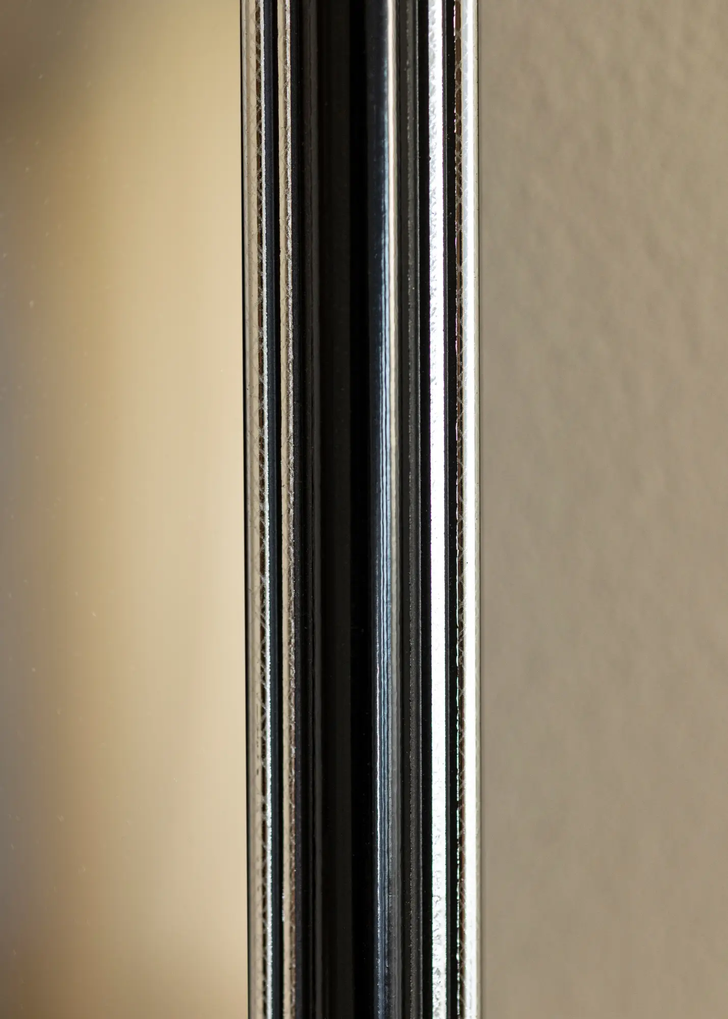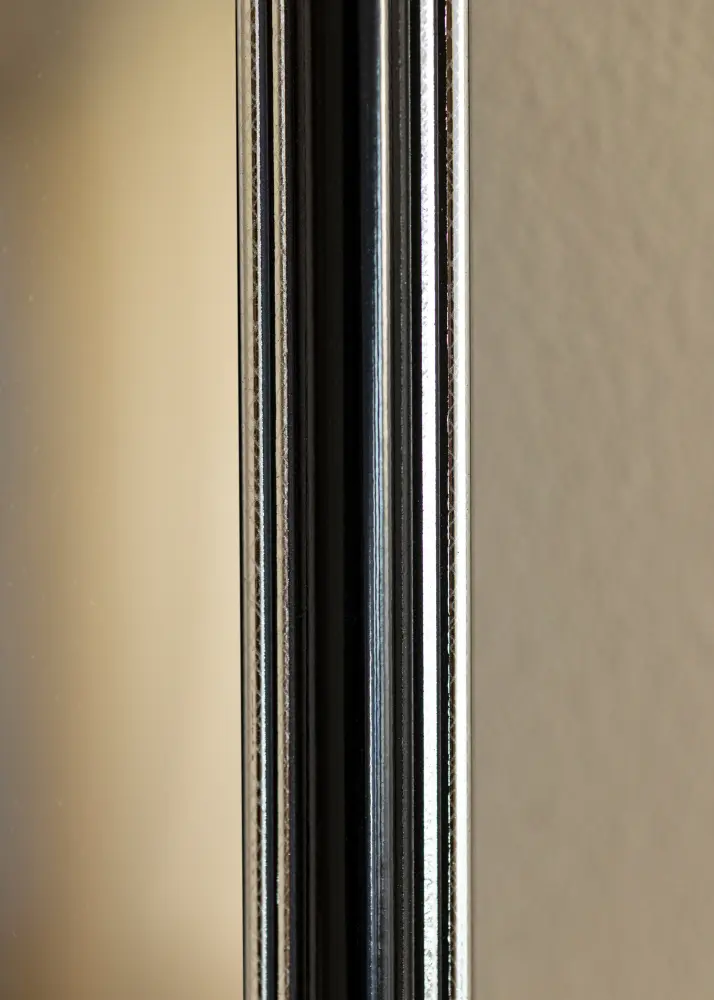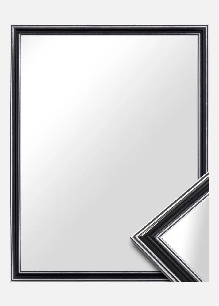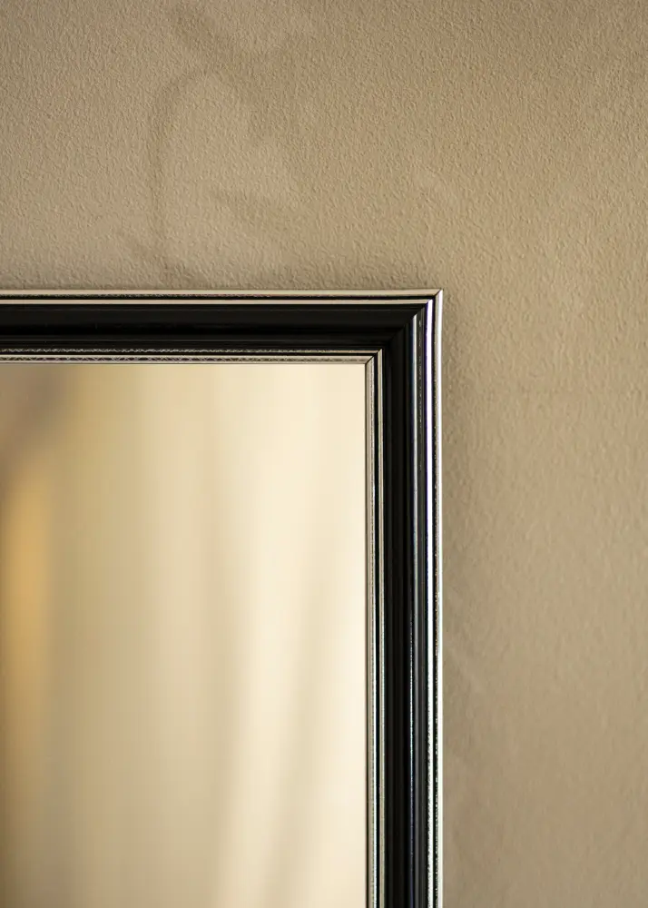 Procurez-vous un beau miroir qui s'adaptera assurément là où vous le souhaitez ! Ce miroir luxueux est fabriqué selon vos mesures dans notre propre atelier d'encadrement. La partie centrale noire avec des bords de couleur argent à l'extrémité et au plus proche du verre ajoute une touche masculine. S'associe facilement avec d'autres meubles, par exemple en argent, noir, blanc et violet.