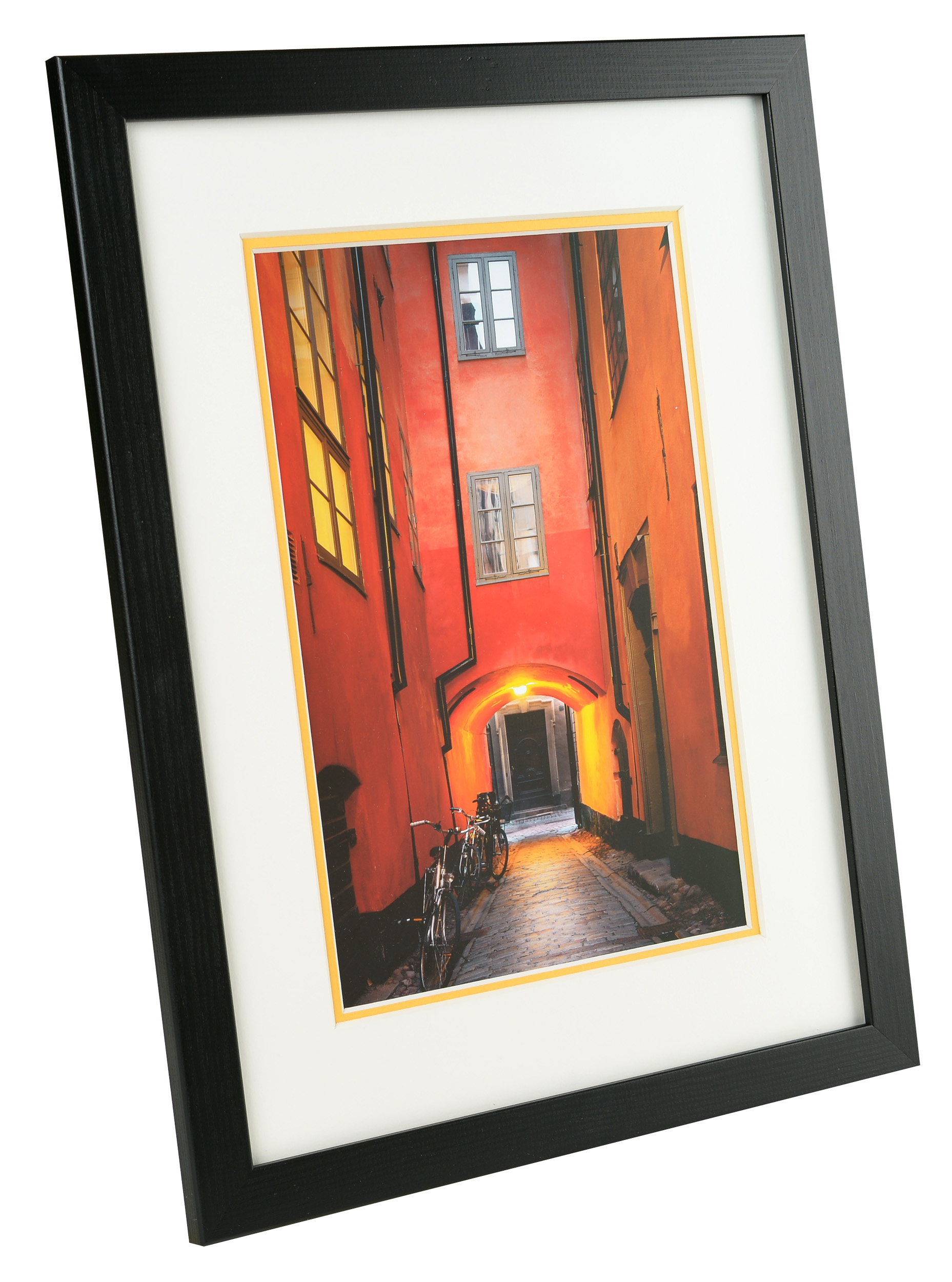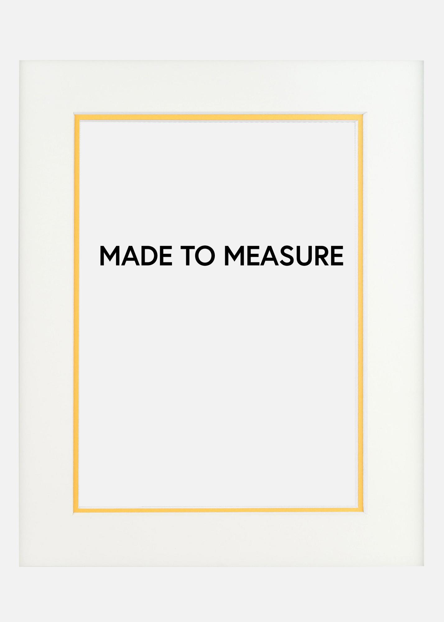 Passe-partout sur mesure à deux couches avec un passe-partout blanc comme base et une couche inférieure de couleur jaune qui donne une bordure colorée de 5 mm autour de l'image. Parfait lorsque vous souhaitez un encadrement spectaculaire qui met en valeur votre image et donne une profondeur supplémentaire au motif. Tous nos passe-partout ont des bordures nettement coupées à un angle de 45 degrés, ce qui donne un encadrement sérieux et professionnel à vos photos.
