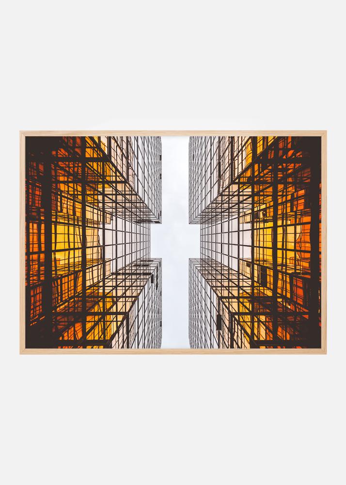 Affiche avec architecture futuriste qui, avec ses lignes graphiques, crée un motif excitant. Les couleurs se fondent du orange profond à la base du bâtiment vers le ciel blanc. Le poster s'harmonise bien avec un cadre plus fin, tant dans un intérieur minimaliste que dans d'autres styles avec des éléments graphiques. Associez-le volontiers avec d'autres tableaux sur des architectures fascinantes ou des environnements urbains.