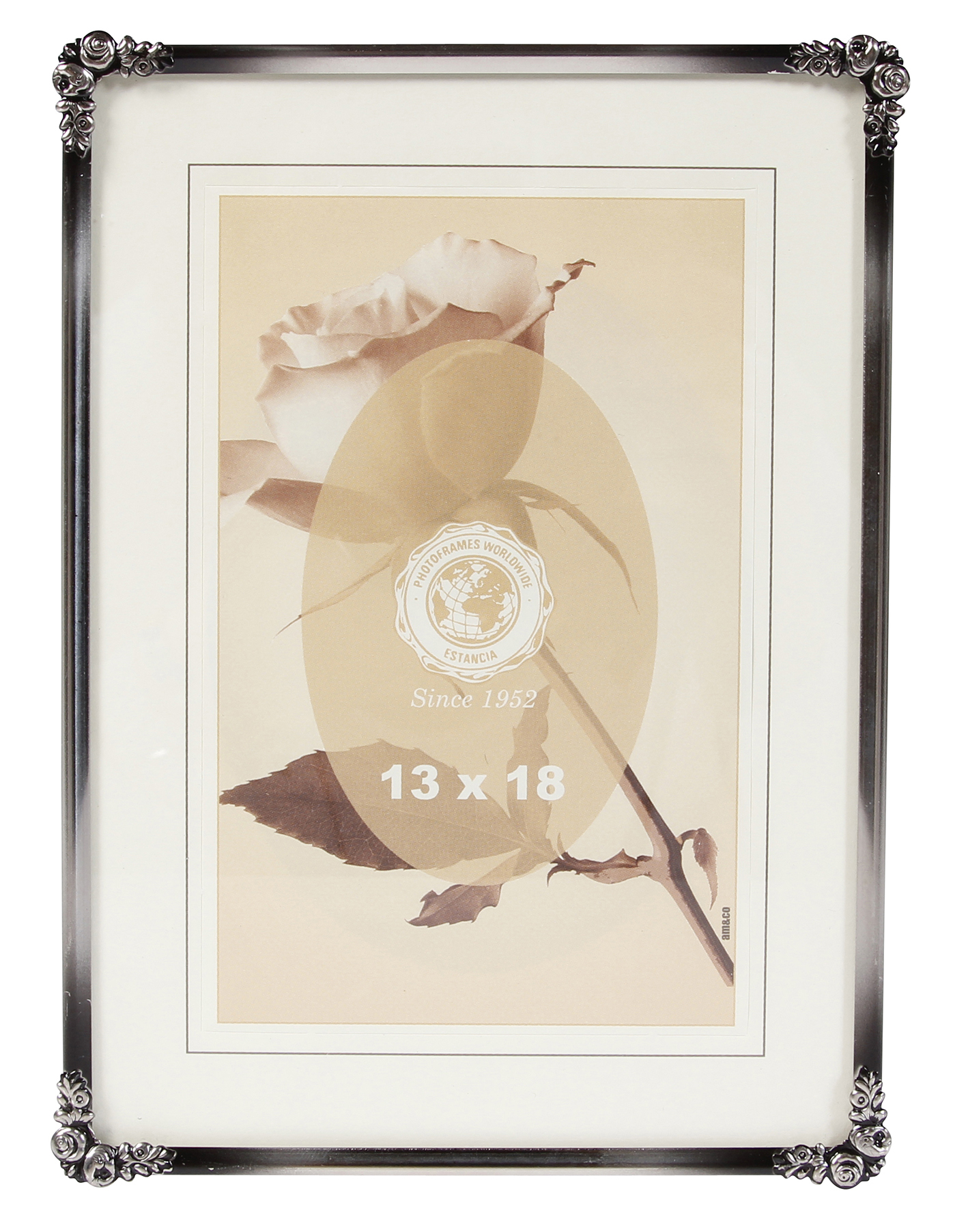Rosen métal argenté est un joli cadre de design classique à la touche ancienne. Chaque coin est décoré de petites roses qui sont un peu "brûlées" pour obtenir la bonne finition. Ce cadre est en métal argenté, ce qui le rend robuste et renforce la sensation d'un cadre exclusif.