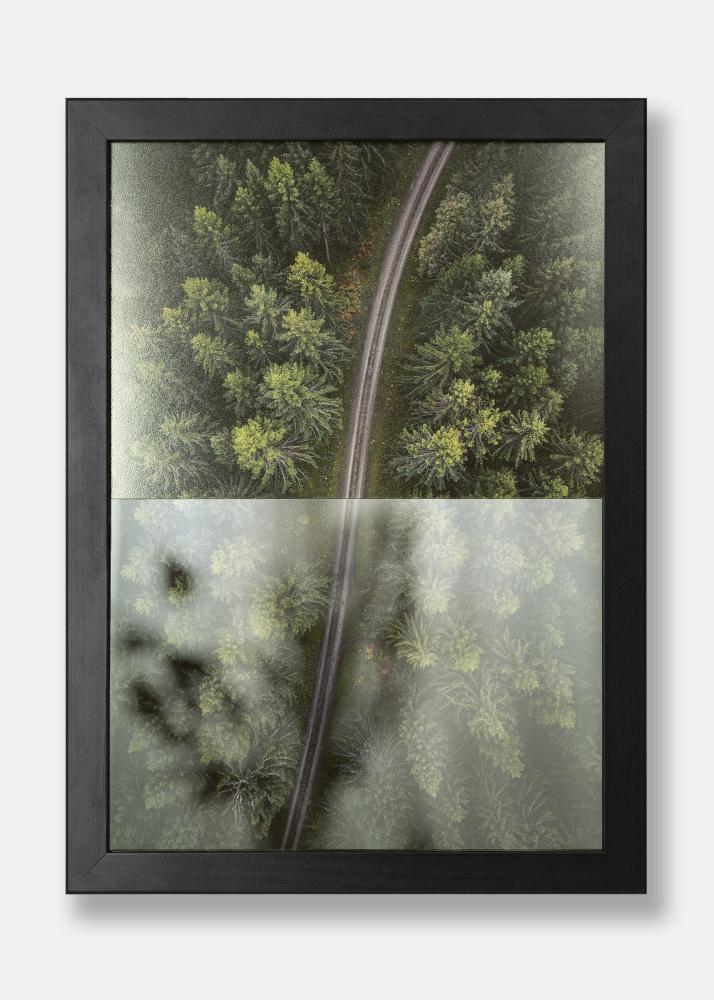 Notez que sous certains angles étroits, un reflet apparaît dans des tons vert/violet. Cela peut souvent être évité en ajustant l’endroit où vous placez l’image encadrée ou en modifiant l’éclairage si cet effet est trop marquant.
