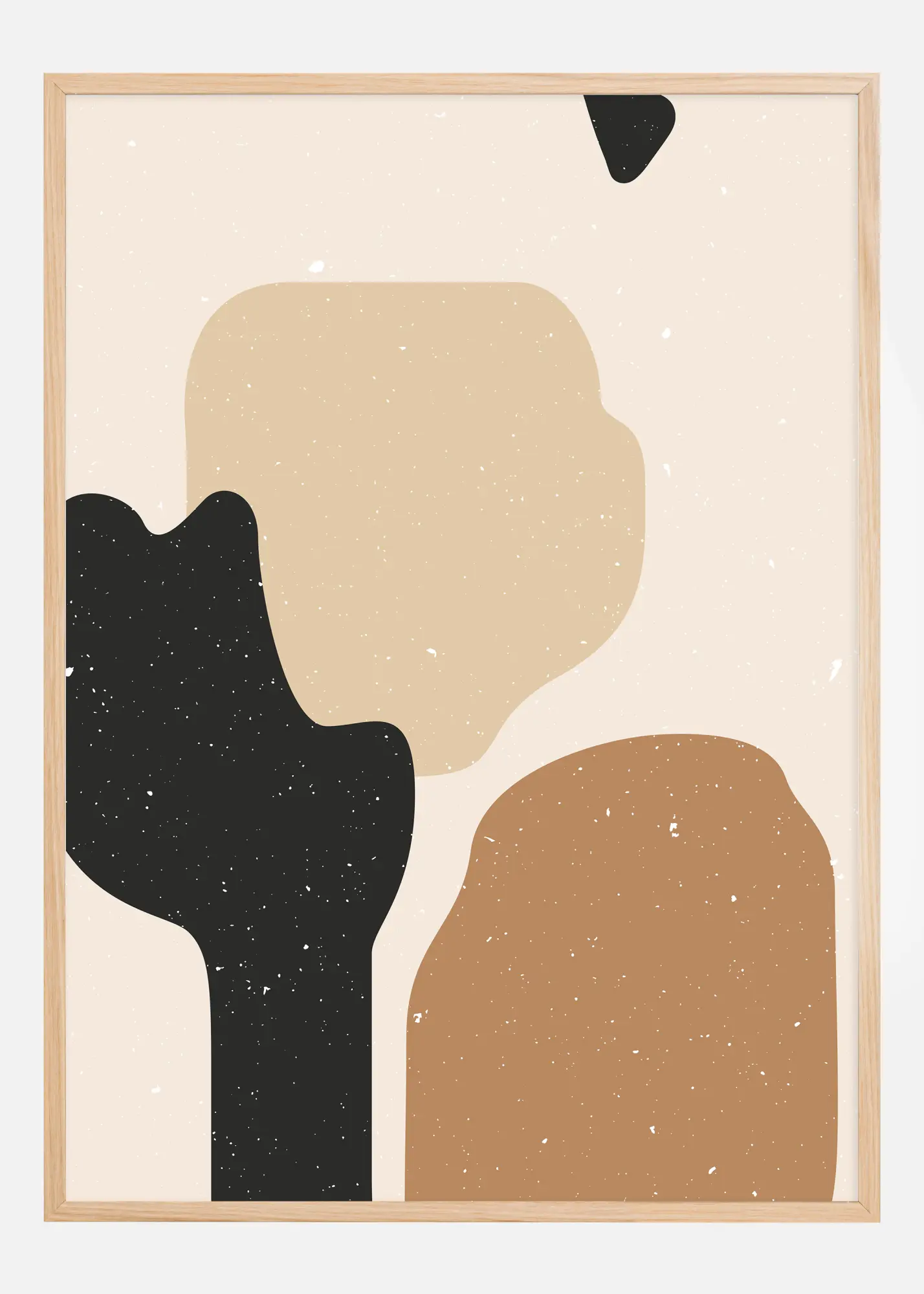 Ce poster abstrait, avec ses formes organiques épurées et sa palette de couleurs chaudes et terreuses, apporte une touche calme et moderne à chaque pièce. Le motif, caractérisé par ses tons noirs et beiges avec des accents de terre cuite, est à la fois mystérieux et accueillant, encourageant le spectateur à interpréter sa propre signification dans les formes simples mais puissantes.