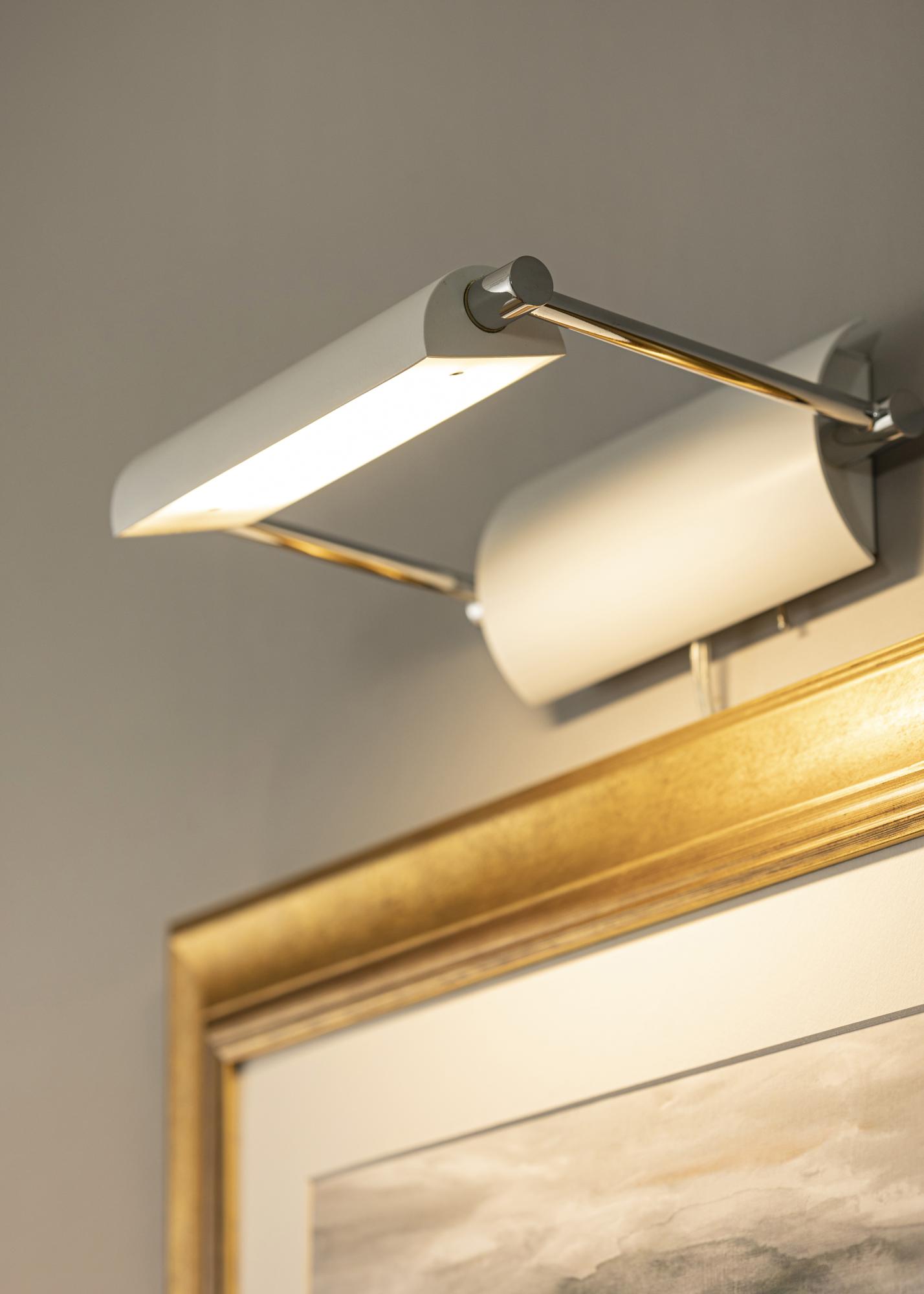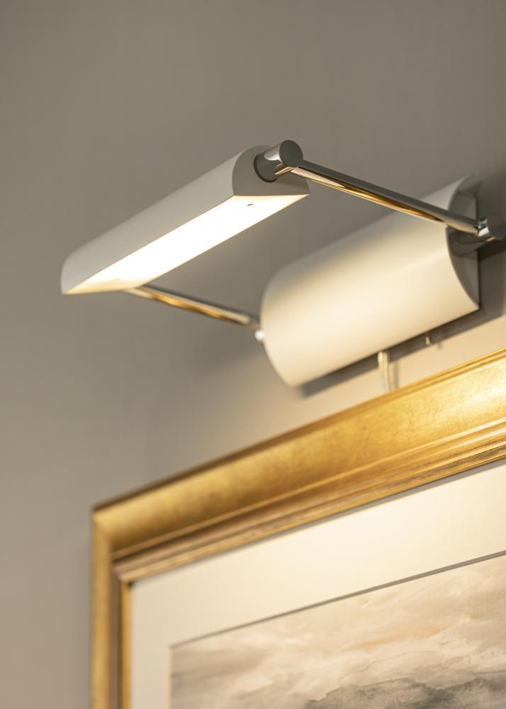 Éclairage de tableau conçu en Suède avec un éclairage LED pour une longue durée de vie. L'éclairage a une bonne lumière de 6W qui correspond à 540 lumens, ce qui donne ce petit plus aux peintures que vous aimez beaucoup et que vous désirez montrer. L'éclairage est facile à régler afin que vous obteniez l'angle que vous souhaitez pour la lumière. Convient à tous les tableaux d'une largeur de 40 à 60 cm.