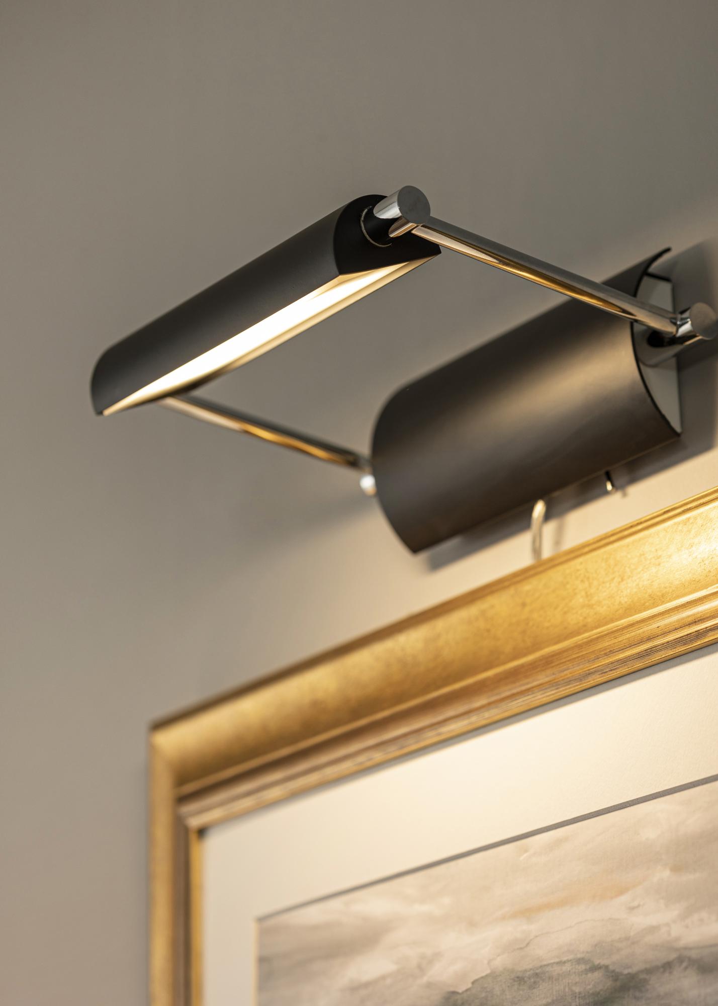 Éclairage de tableau conçu en Suède avec un éclairage LED pour une longue durée de vie. L'éclairage a une bonne lumière de 6W qui correspond à 540 lumens, ce qui donne ce petit plus aux peintures que vous aimez beaucoup et que vous désirez montrer. L'éclairage est facile à régler afin que vous obteniez l'angle que vous souhaitez pour la lumière. Convient à tous les tableaux d'une largeur de 40 à 60 cm.