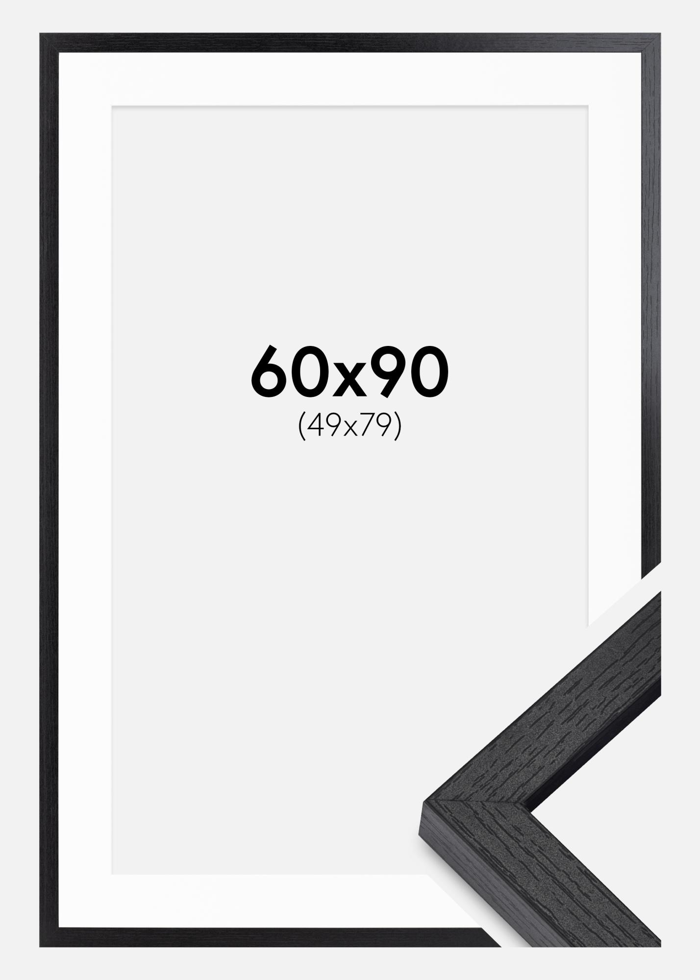 BGA Cadre Boîte Noir 60x90 cm - Passe-partout Blanc 50x80 cm