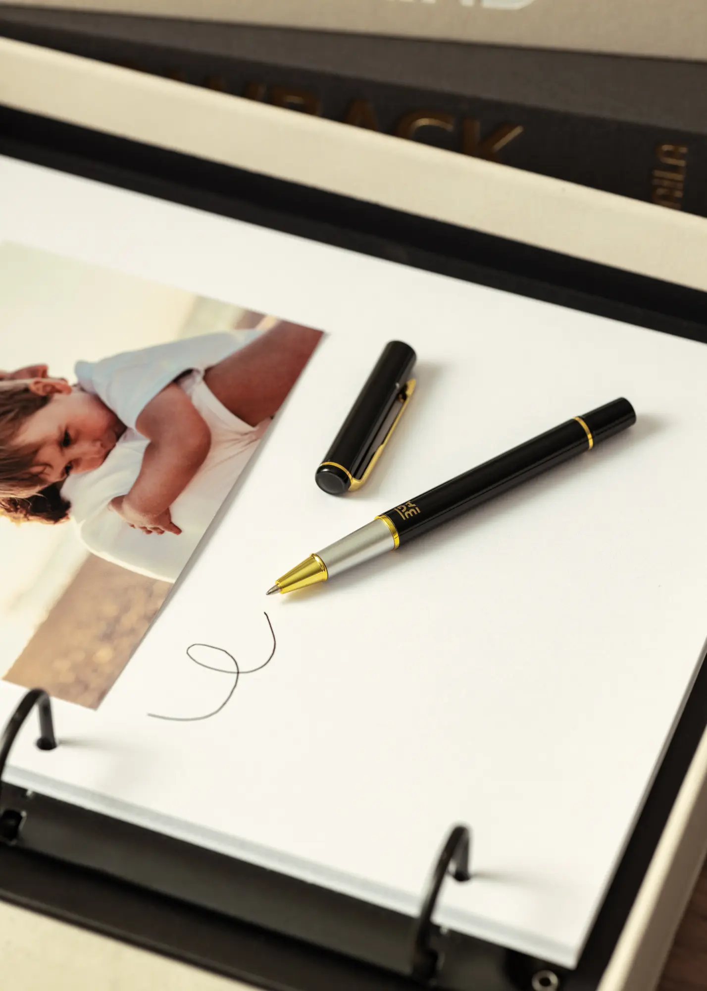 Le stylo a un design élégant avec des détails en métal qui lui donnent une sensation exclusive. Le capuchon fourni protège la pointe et permet de le transporter facilement dans un sac ou de le ranger avec vos albums.