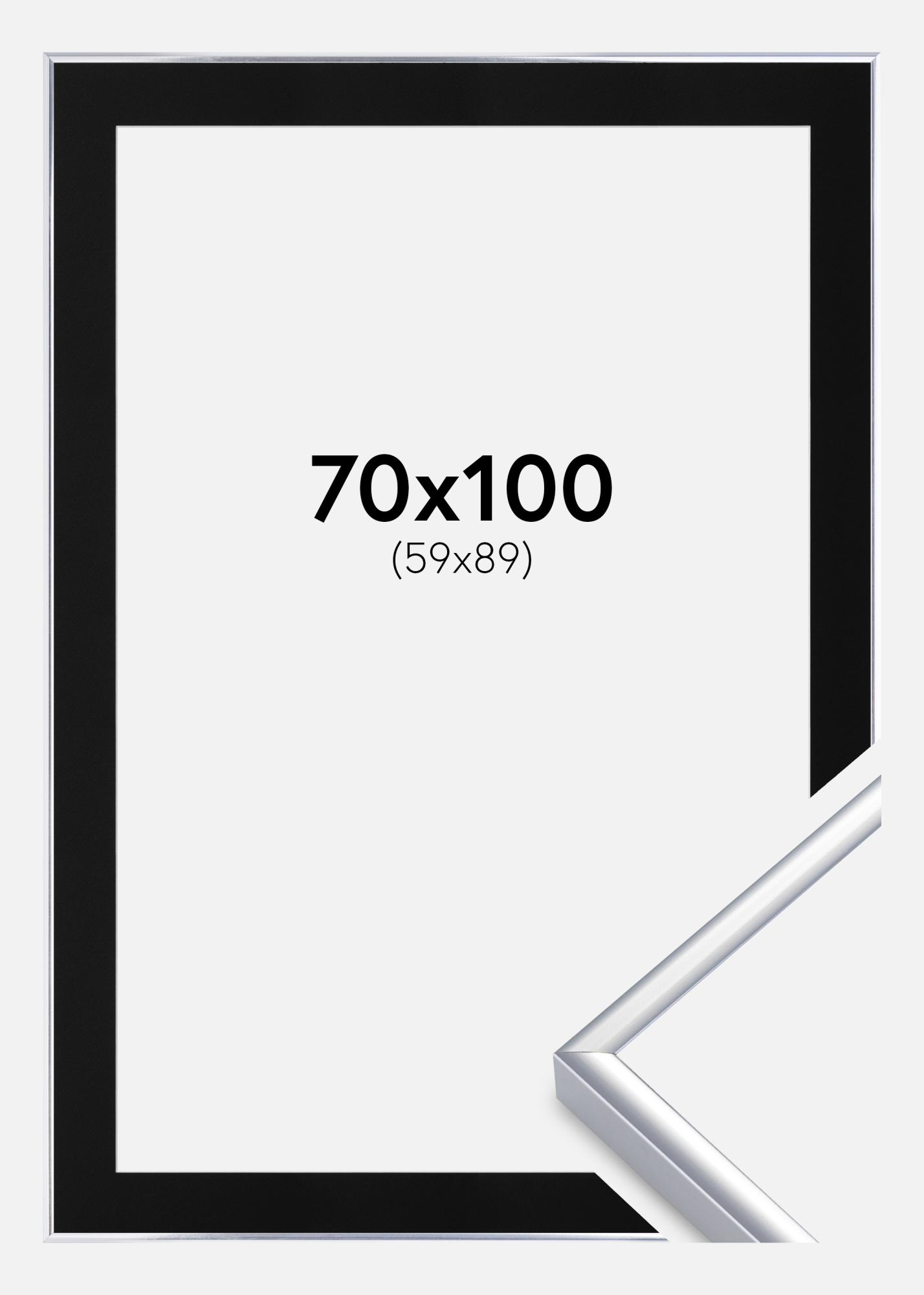 Cadre Aluminium Brillant Argent 70x100 cm - Passe-partout Noir 60x90 cm