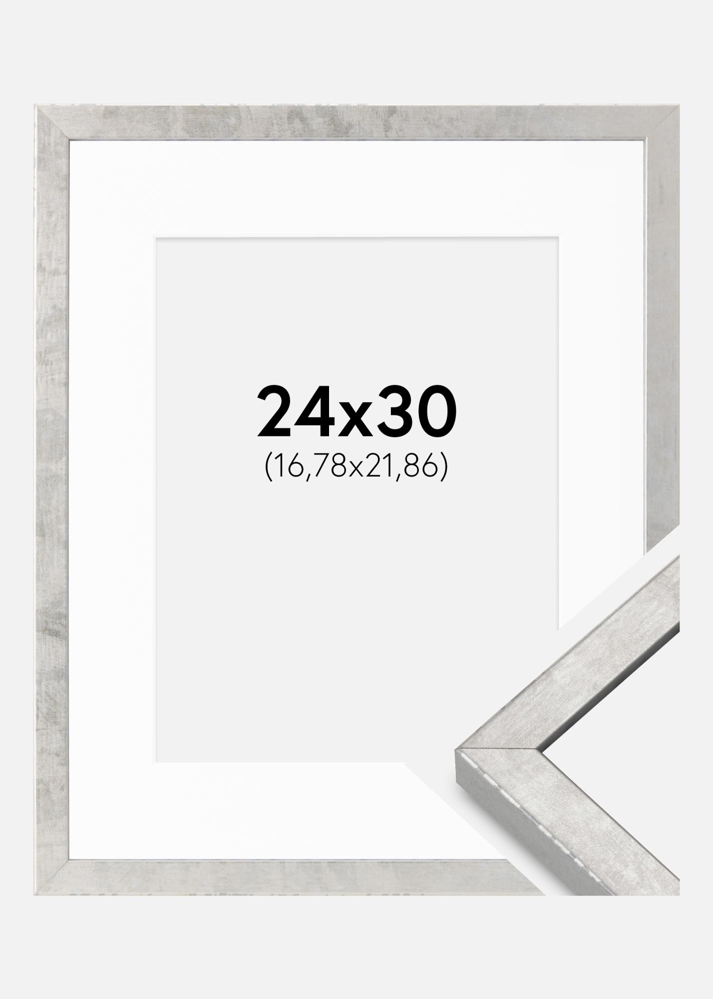Cadre Ares Argent 24x30 cm - Passe-partout Blanc 7x9 inches
