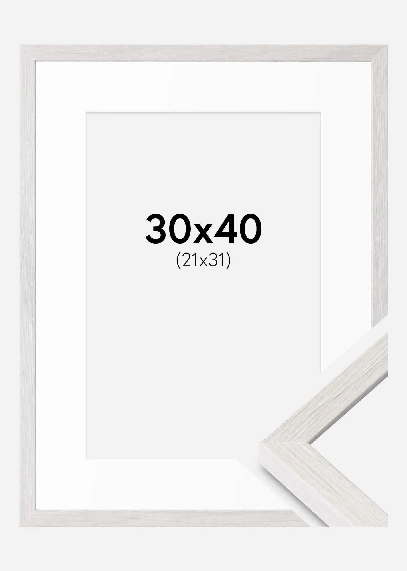 Cadre Ares Chêne Blanc 30x40 cm - Passe-partout Blanc 22x32 cm