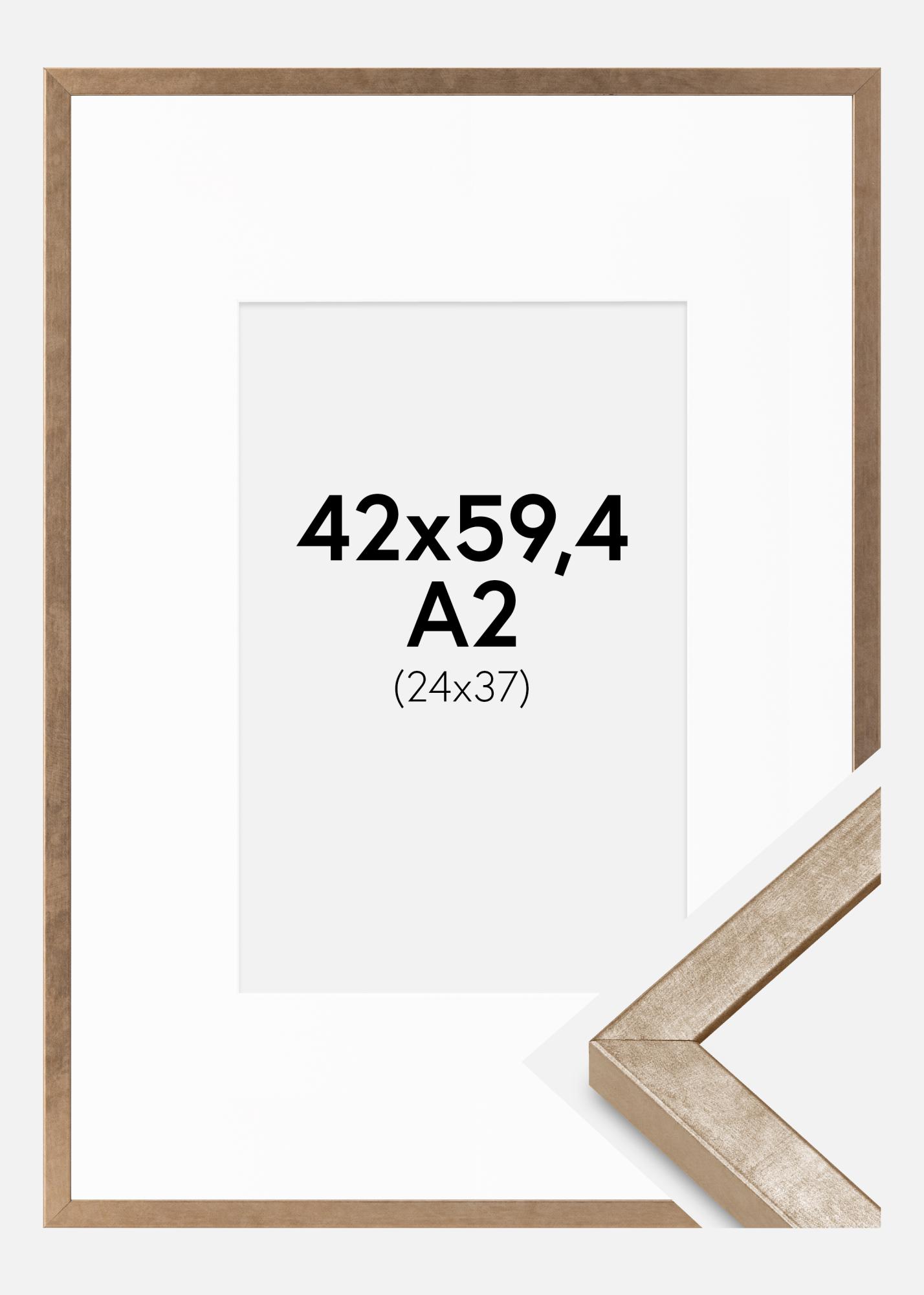 Cadre Ares Laiton 42x59,4 cm - Passe-partout Blanc 25x38 cm