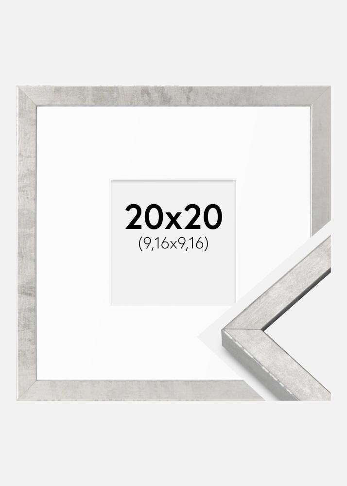 Cadre Ares Argent 20x20 cm - Passe-partout Blanc 4x4 inches