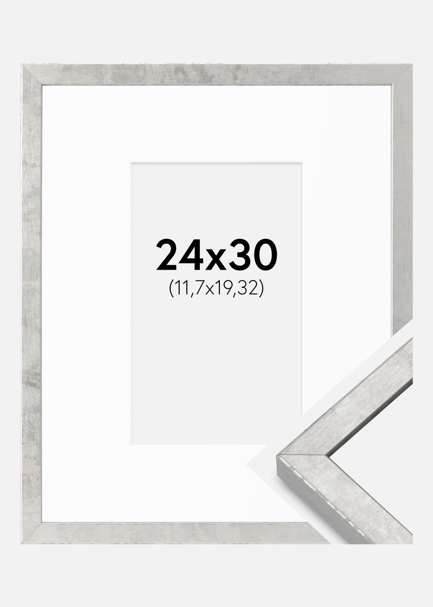 Cadre Ares Argent 24x30 cm - Passe-partout Blanc 5x8 inches