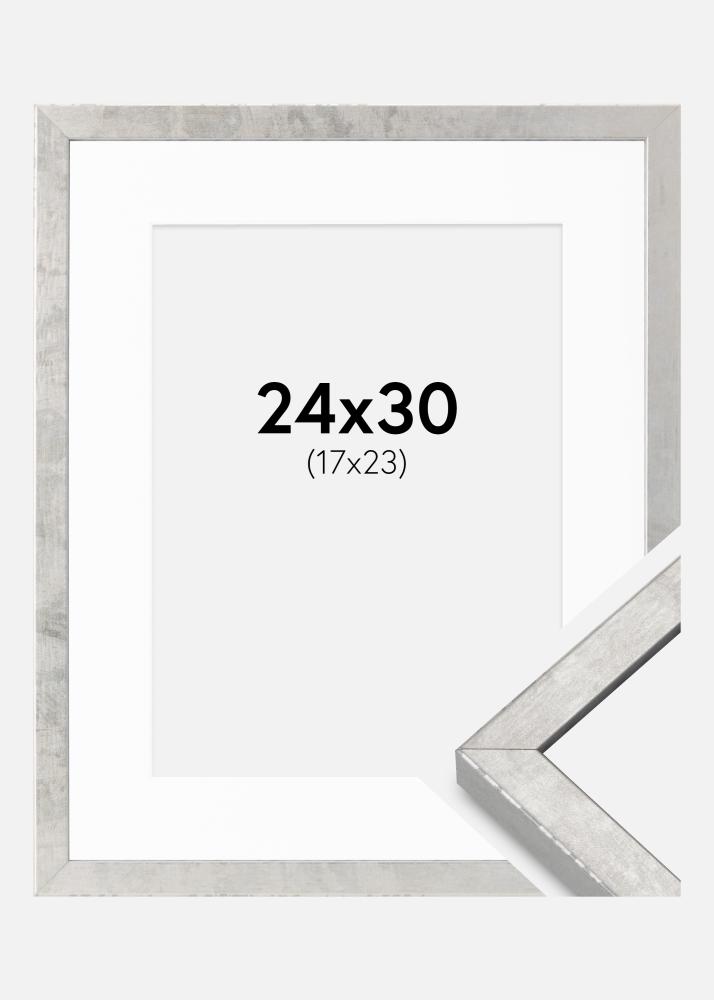 Cadre Ares Argent 24x30 cm - Passe-partout Blanc 18x24 cm