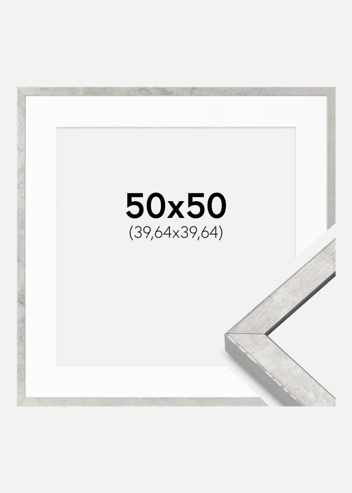 Cadre Ares Argent 50x50 cm - Passe-partout Blanc 16x16 inches