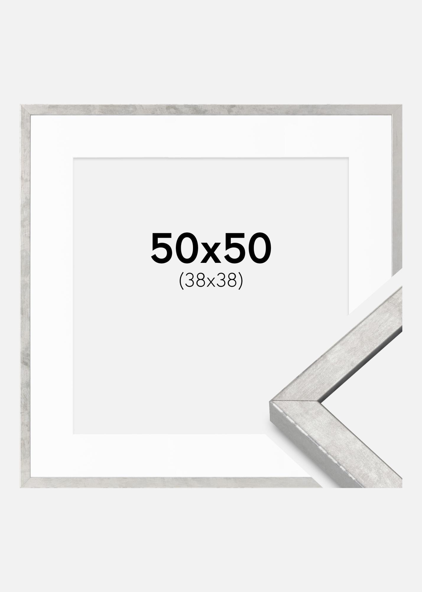 Cadre Ares Argent 50x50 cm - Passe-partout Blanc 39x39 cm