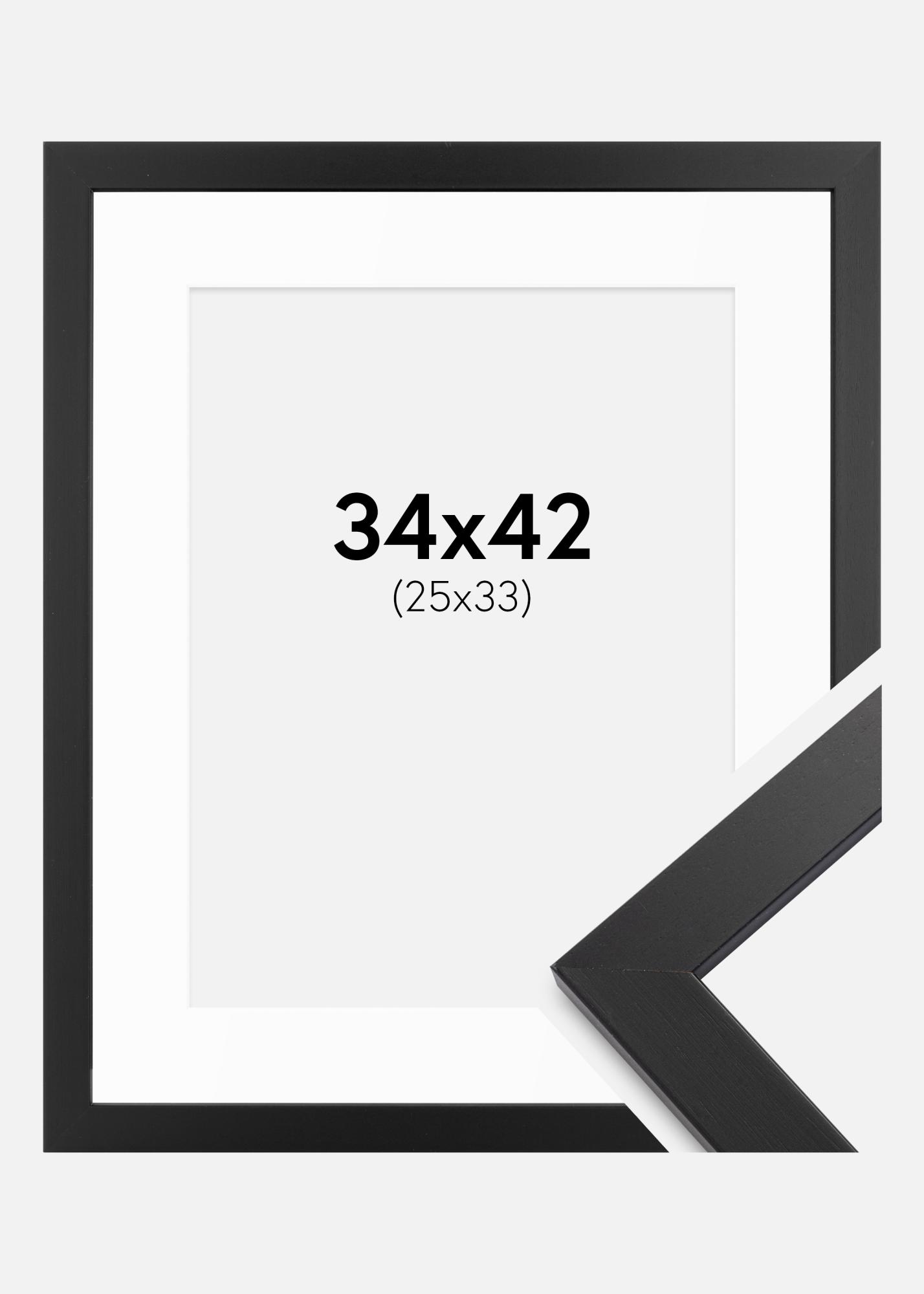 Cadre noir bois 34x42 cm - Passe-partout Blanc 26x34 cm