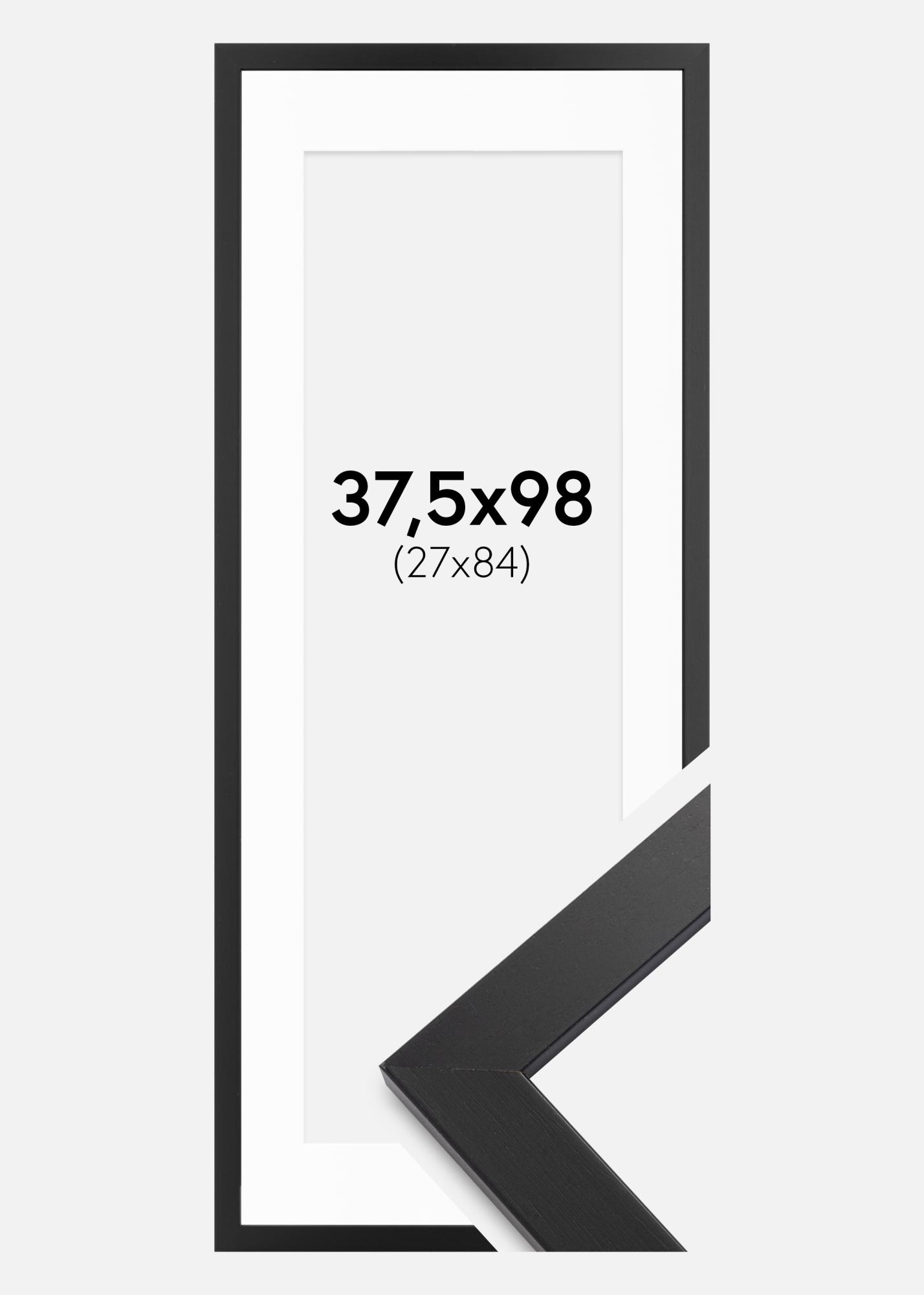 Cadre noir bois 37,5x98 cm - Passe-partout Blanc 28x85 cm