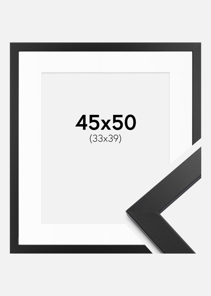 Cadre noir bois 45x50 cm - Passe-partout Blanc 34x40 cm
