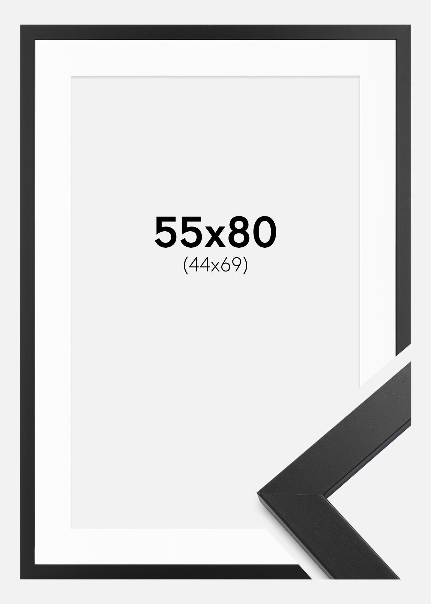 Cadre noir bois 55x80 cm - Passe-partout Blanc 45x70 cm