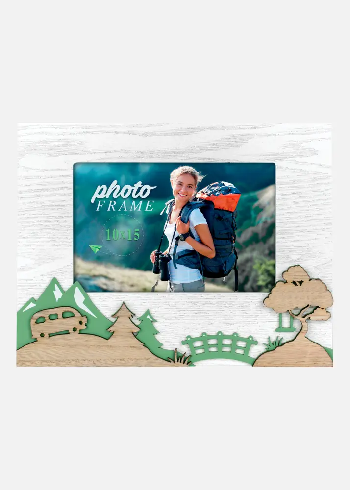 Apportez une touche personnelle à votre salon ou votre chambre avec ce charmant cadre. Son design avec des motifs en plein air complète un style de décoration rustique ou naturel et devient un bel élément de la pièce. Que ce soit une photo de votre dernière randonnée ou une photo de famille de la maison d'été, ce cadre mettra en valeur votre photo de la meilleure façon possible.