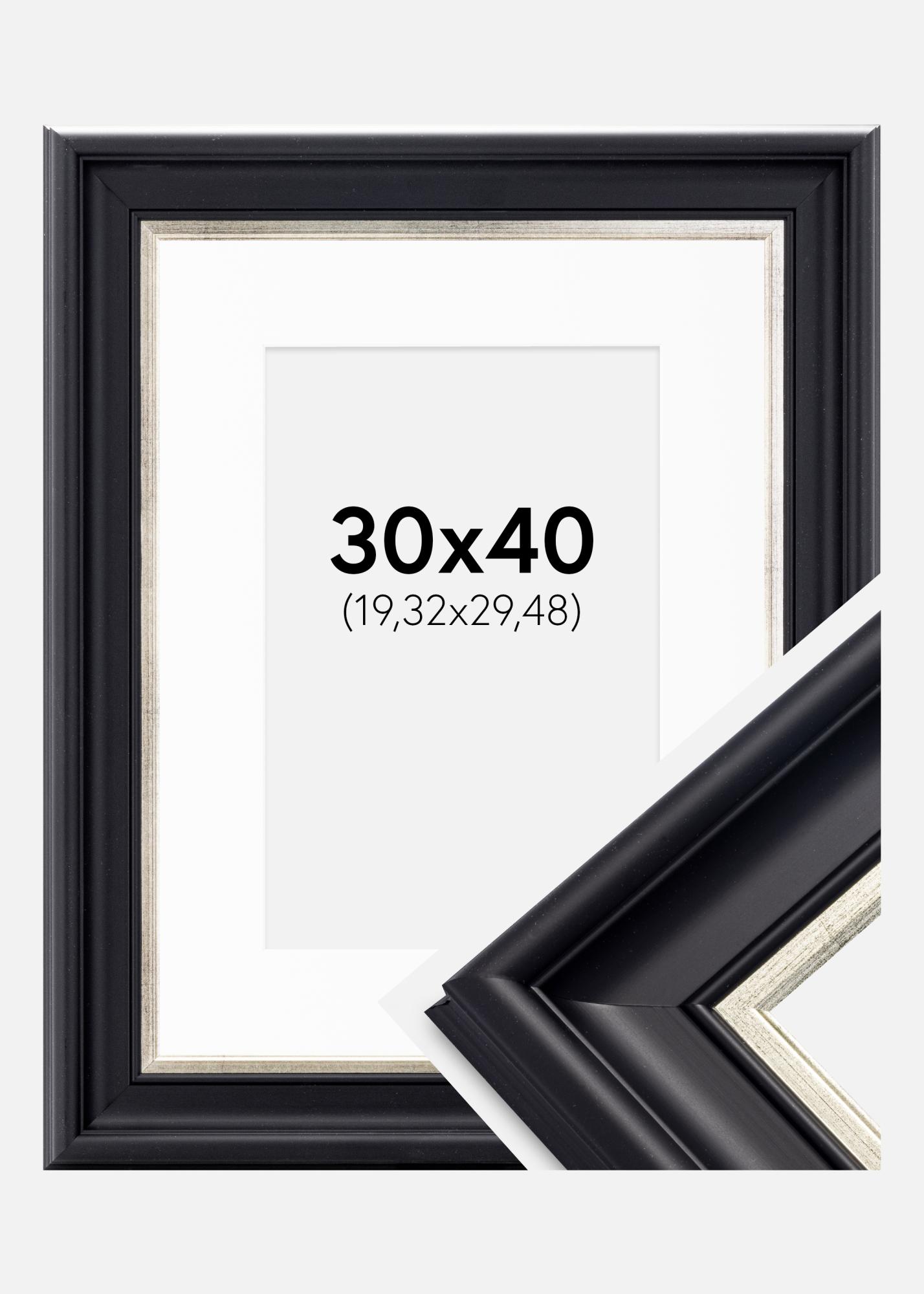 Cadre Dalarna Noir-Argent 30x40 cm - Passe-partout Blanc 8x12 inches