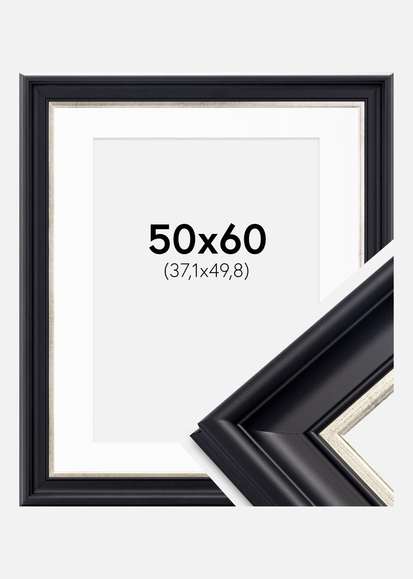 Cadre Dalarna Noir-Argent 50x60 cm - Passe-partout Blanc 15x20 inches
