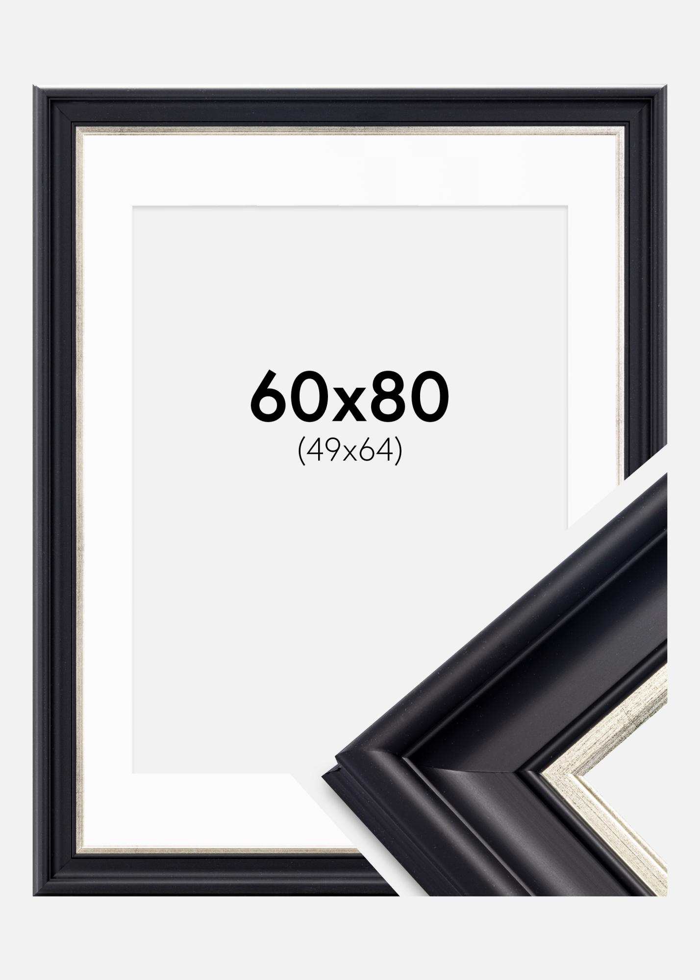 Cadre Dalarna Noir-Argent 60x80 cm - Passe-partout Blanc 50x65 cm