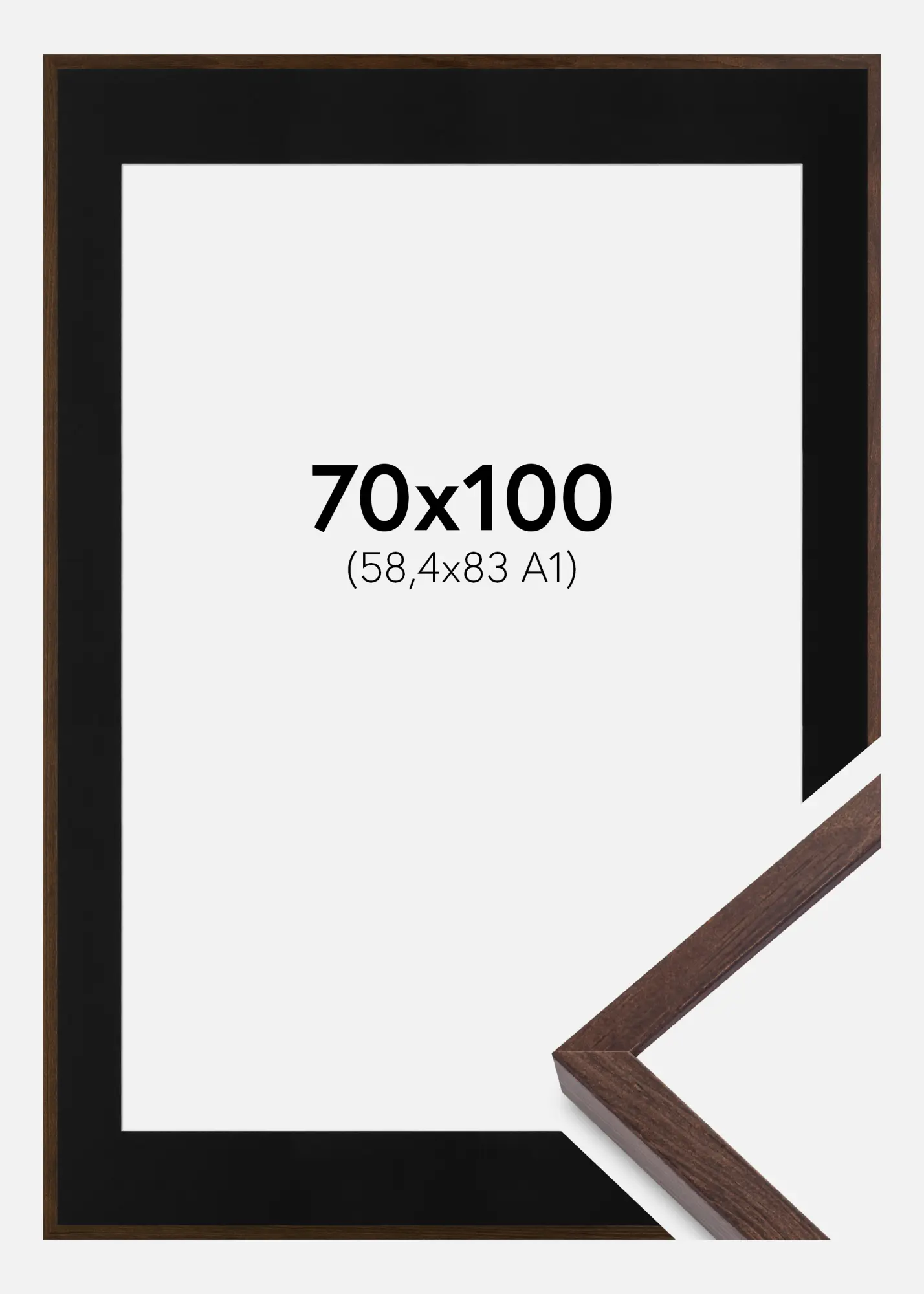 Cadre E-Line Noyer 70x100 cm - Passe-partout Noir 59,4x84 cm