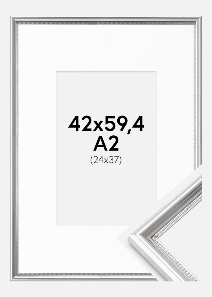 Cadre Gala Argent 42x59,4 cm (A2) - Passe-partout Blanc 25x38 cm