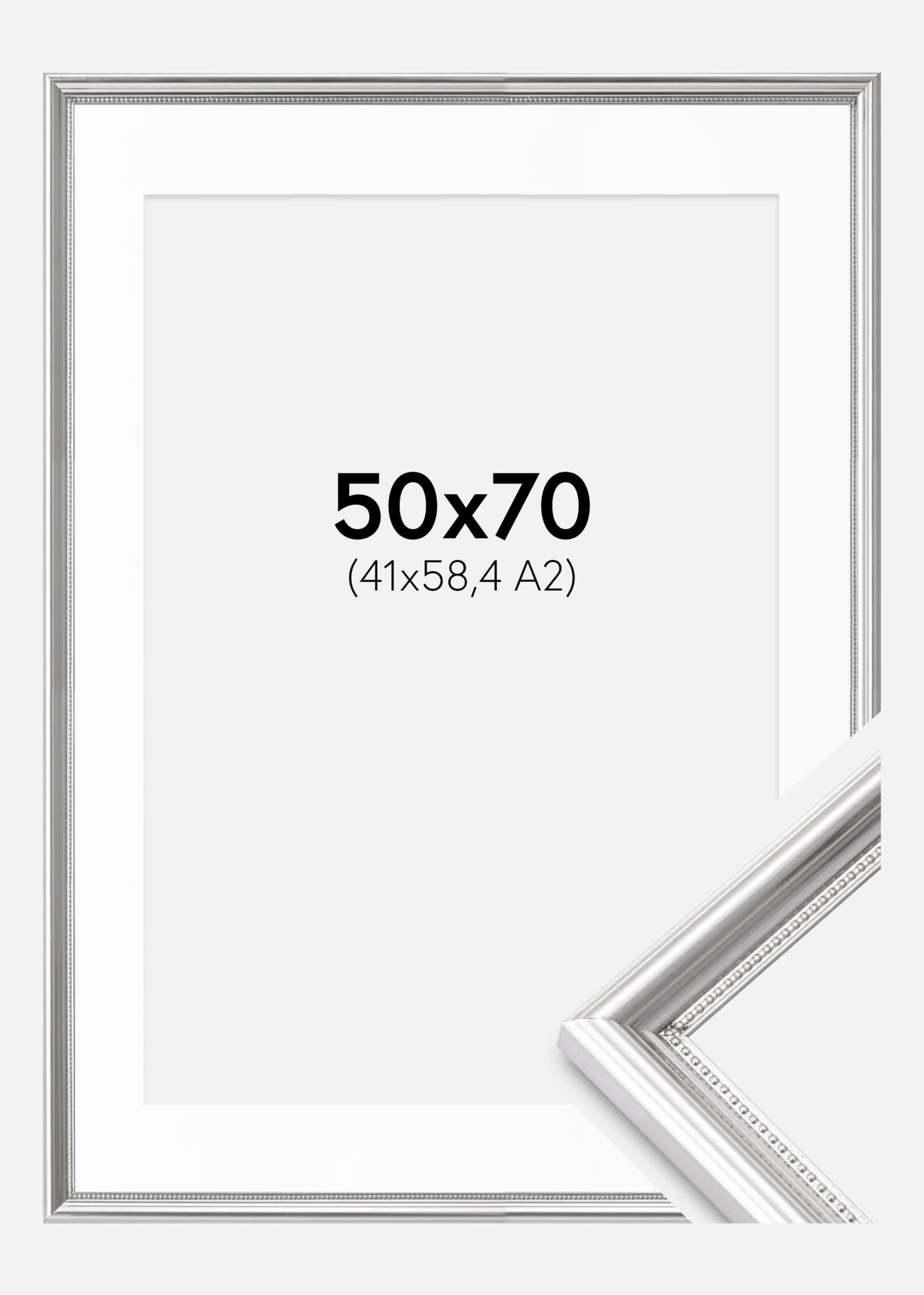 Cadre Gala Argent 50x70 cm - Passe-partout Blanc 42x59,4 cm (A2)