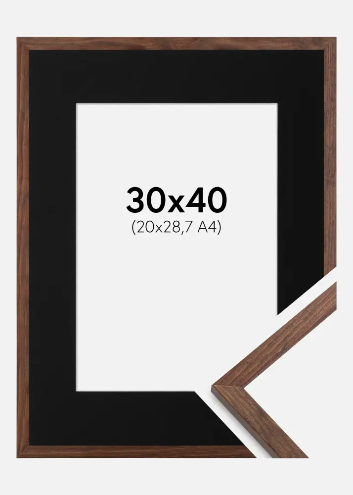 Cadre Galant Noyer 30x40 cm - Passe-partout Noir 21x29,7 cm