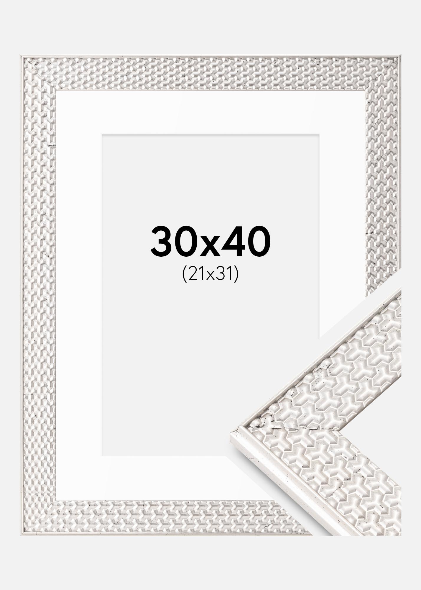 Cadre Grace Argent 30x40 cm - Passe-partout Blanc 22x32 cm