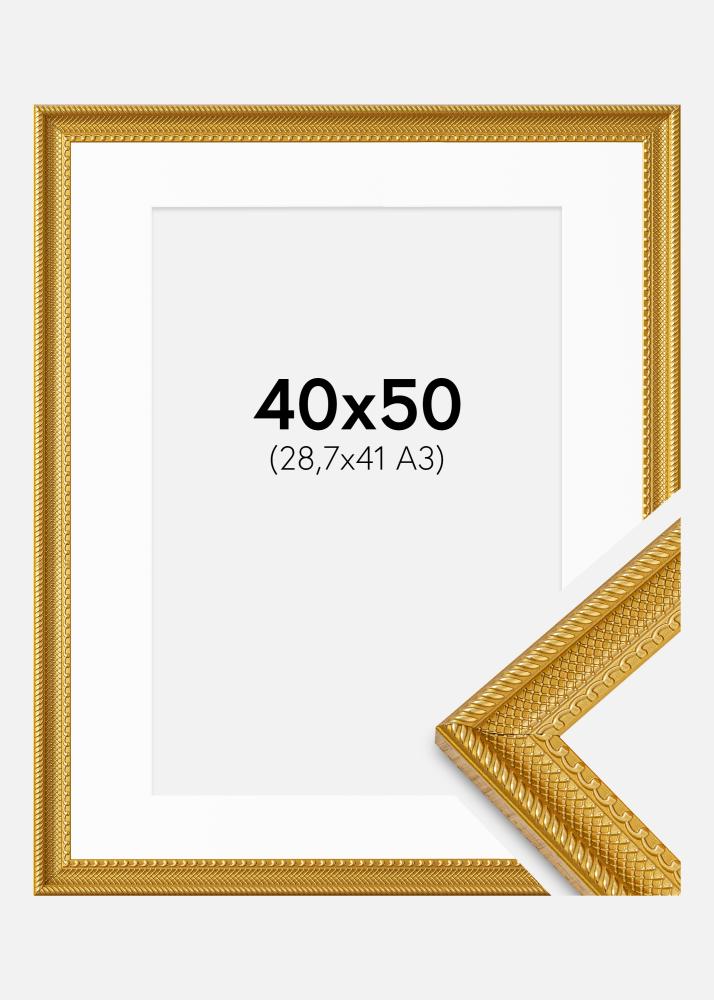 Cadre Lattice Or 40x50 cm - Passe-partout Blanc 29,7x42 cm