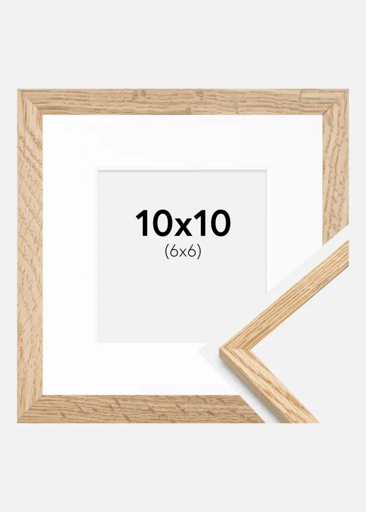 Cadre Mince Chêne 10x10 cm - Passe-partout Blanc 7x7 cm