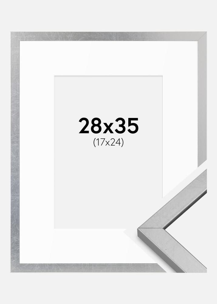 Cadre Minerva Argent 28x35 cm - Passe-partout Blanc 18x25 cm
