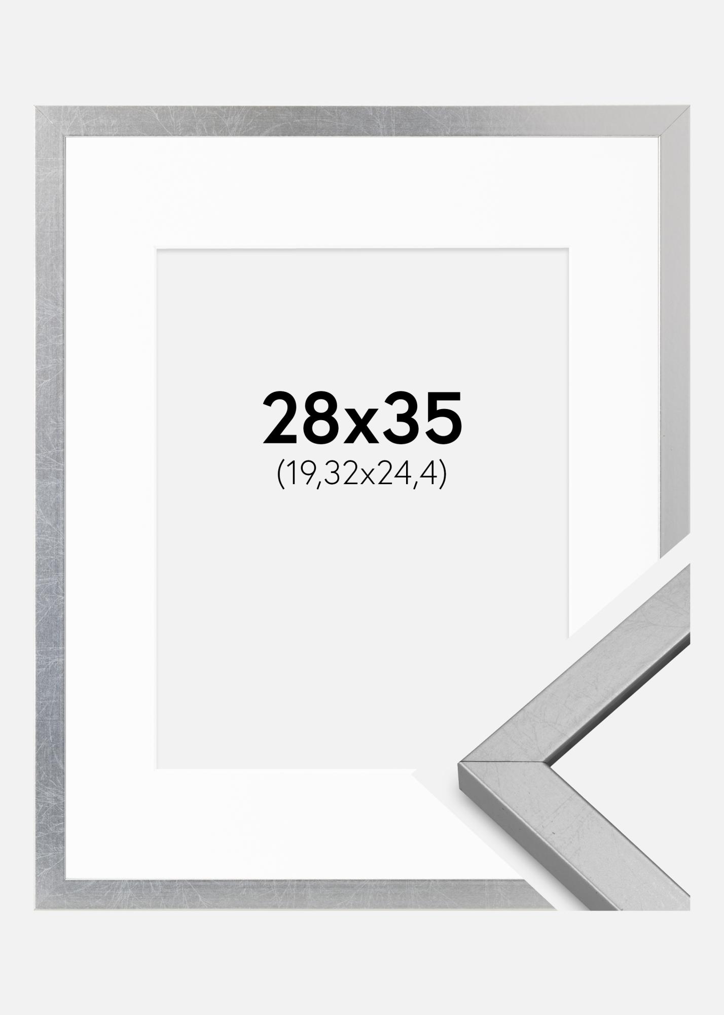 Cadre Minerva Argent 28x35 cm - Passe-partout Blanc 8x10 inches